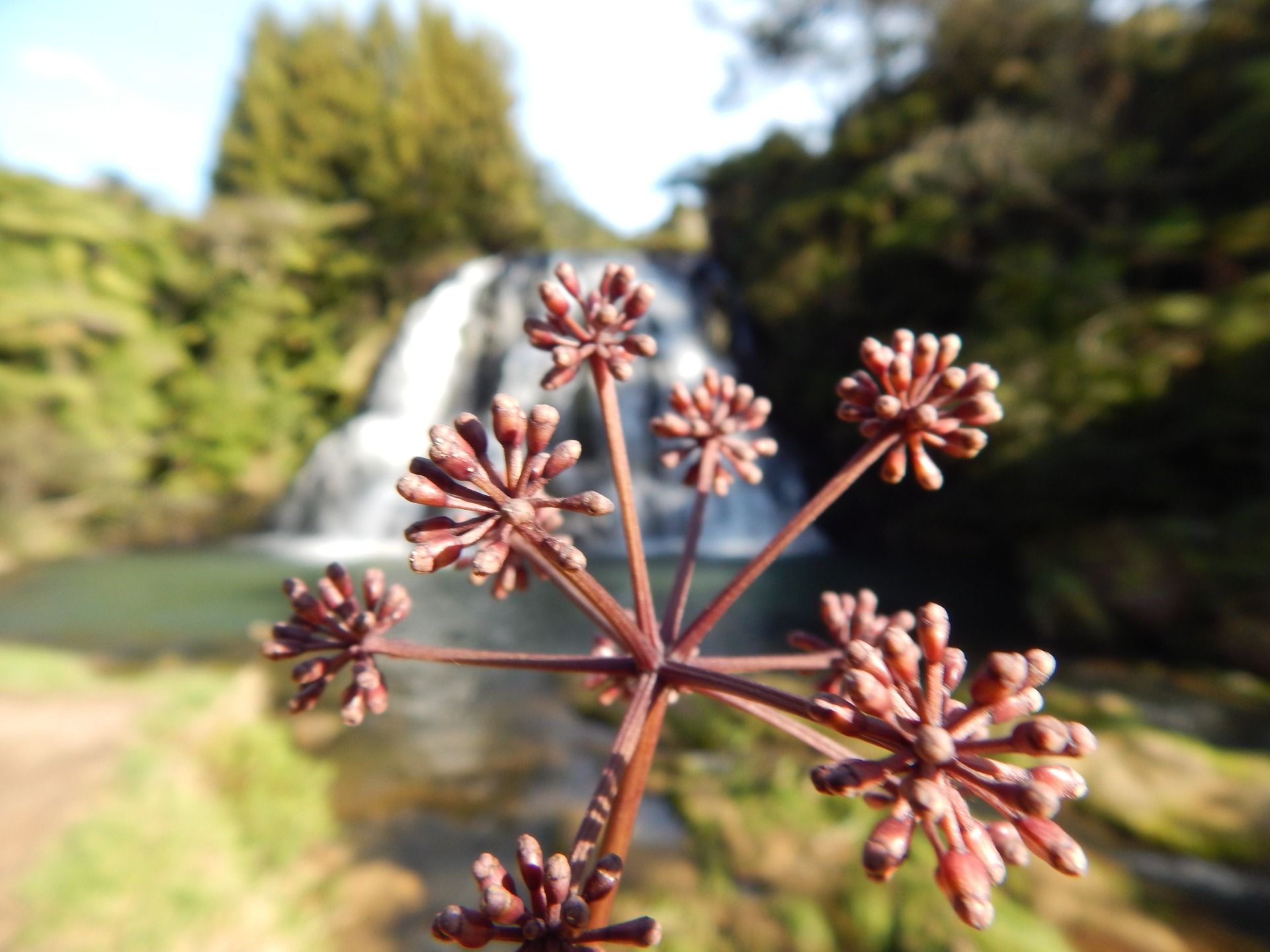 I don't remember the name of this location but was really close by the Karangahake Gorge walk, this waterfalls were really elegant most the ones I have seen in this northen area of New Zealand were big, single drop falls usually situaded in what look like a jungle(but cold ahah) instead this one was looking like some palance stairways starting wide at the bottom and leading up in a narrow hall at the top, too bad I'm not a salmon so I could not see what was up there so instead I took some random photos with this never seen before plant.