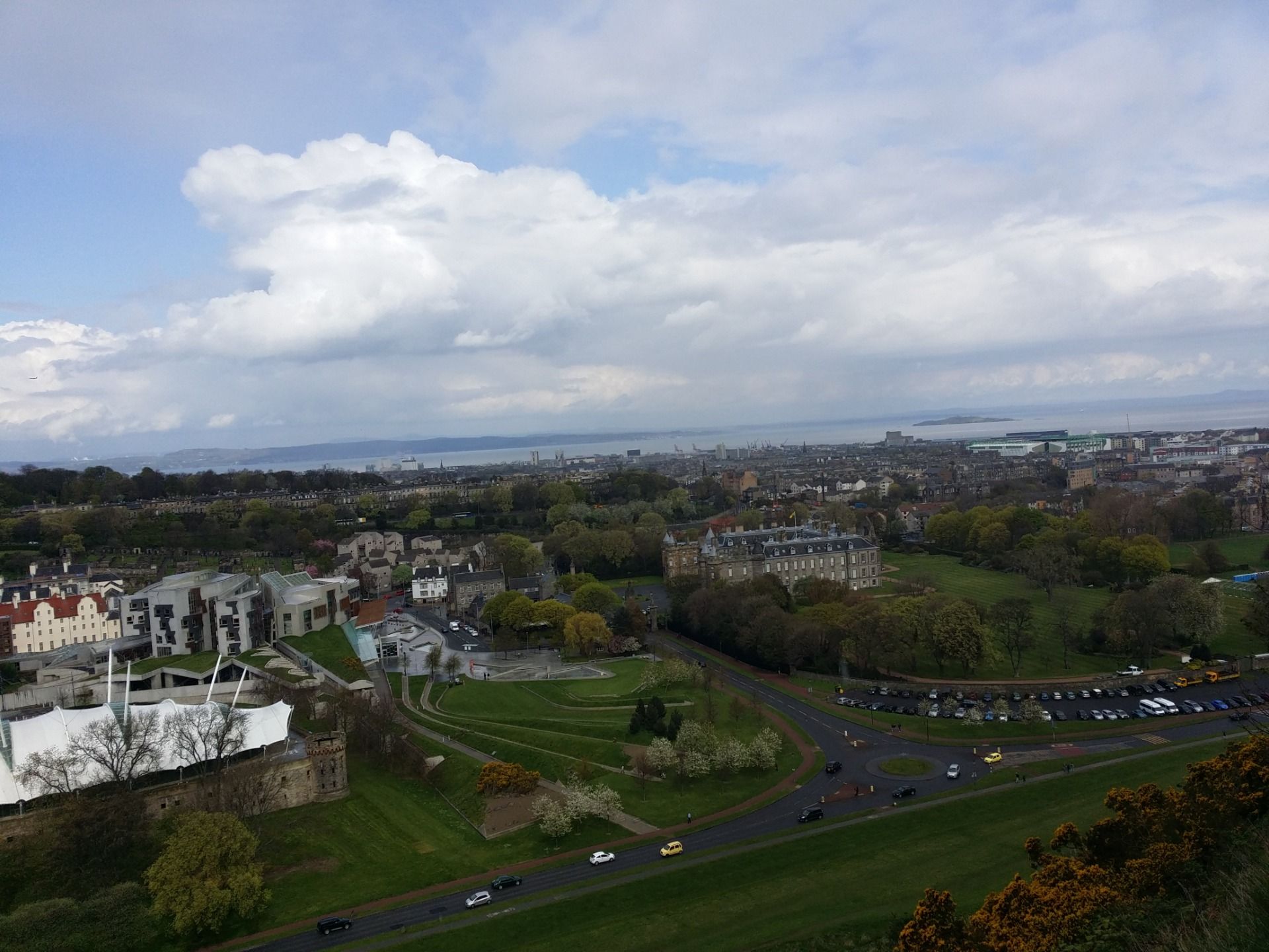 After watching the City [The Amazing Scotland: Part One "The Old Town & The New Town of Edinburgh"](https://hive.blog/hive-184437/@mustavi/the-amazing-scotland-part-one-the-old-town-and-the-new-town-of-edinburgh) We were continuing our tour for the rest of the day and after getting off the bus near the palace at Regent Road around 11am and we thought to visit the Palace of Holyrood but my friends felt no interest and said we have seen so many old buildings already let's watch the natural beauty! So I had to left the chance to observe the beautiful Palace. Instead of watching the old building built in 1678 we went to the Scottish Parliament Building close to the park constructed during 1999, after observing the beautiful building we had to get ourselves ready to climb around 1000 feet.