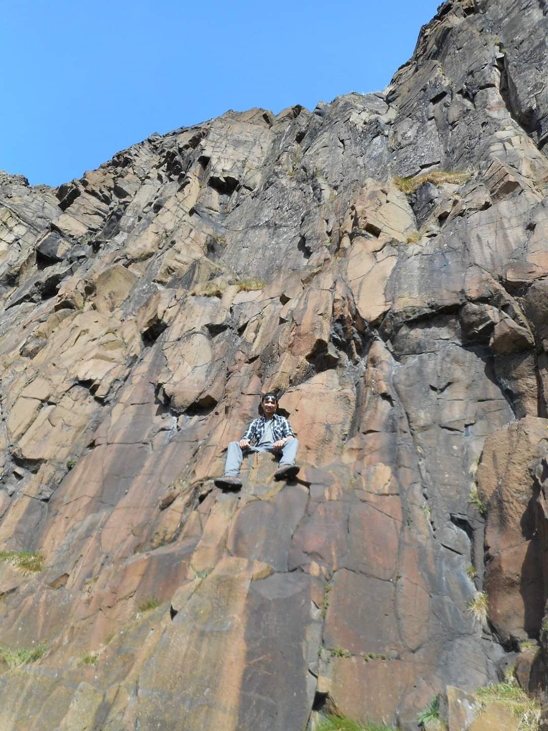 The view of Calton Hill and the Edinburgh Palace far away and could be seen from the dormant volcano's peak. In the heart of the Edinburgh this wild naturel area is breath-taking. Soon we have reached the Salisbury Crags (stone kind road) it was only 46 meter height still the panoramic view looks awesome from this distance.