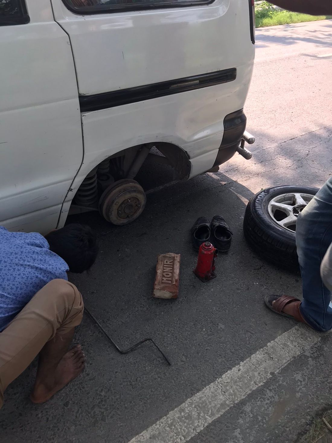We started our journey, me with my dad in the ambulance and my family was in a micro bus. We never knew the call was waiting for us! The micro bus had an accident within half an hour of our journey! I could have lost my family! The back left wheel just apart from the car and luckily there was no injury as the car was following our ambulance which was driving slowly (40km/h) due to my Dad's sickness.