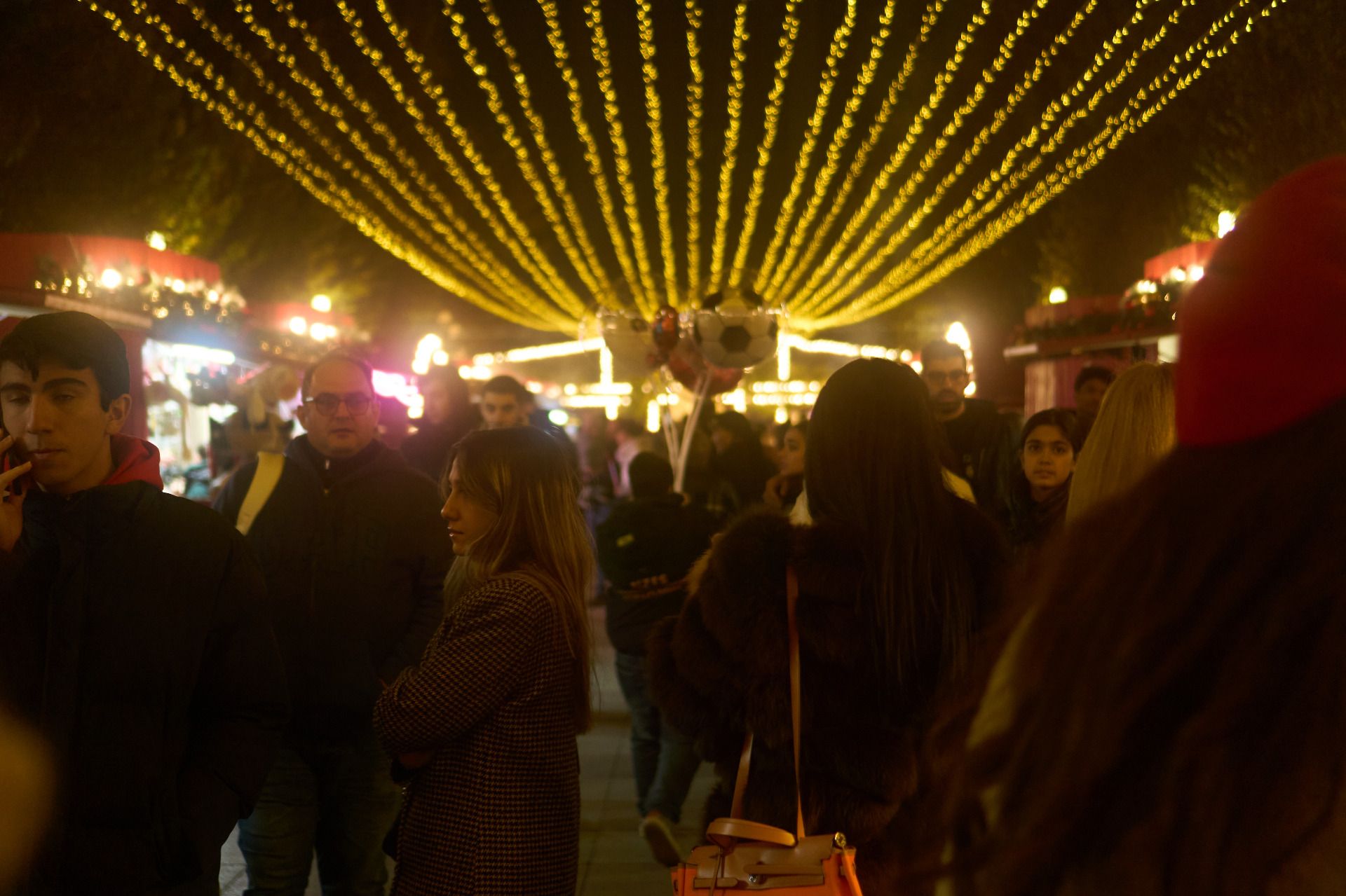 Though the first market to open is within Yerevan's Season's Park. A small park that is more a big seating area with some fountains in the middle more than anything else. Mostly the spot for bigger festivals like this where there are many people, a big stage for live music, and a few stalls in which people can grab a few snacks and drinks. Under the colder evenings and going into the much colder nights, these are wonderful. We walked around the area a little. The music wasn't the most festive, mostly just (more) annoying songs of Bruno Mars which was a bit of a surprise. We assumed there'd be some festive music at least, whether it came from speakers or a live stage performance. The place was stacked with people. It felt more dense than the markets during summer, and this was just the opening of the first market!