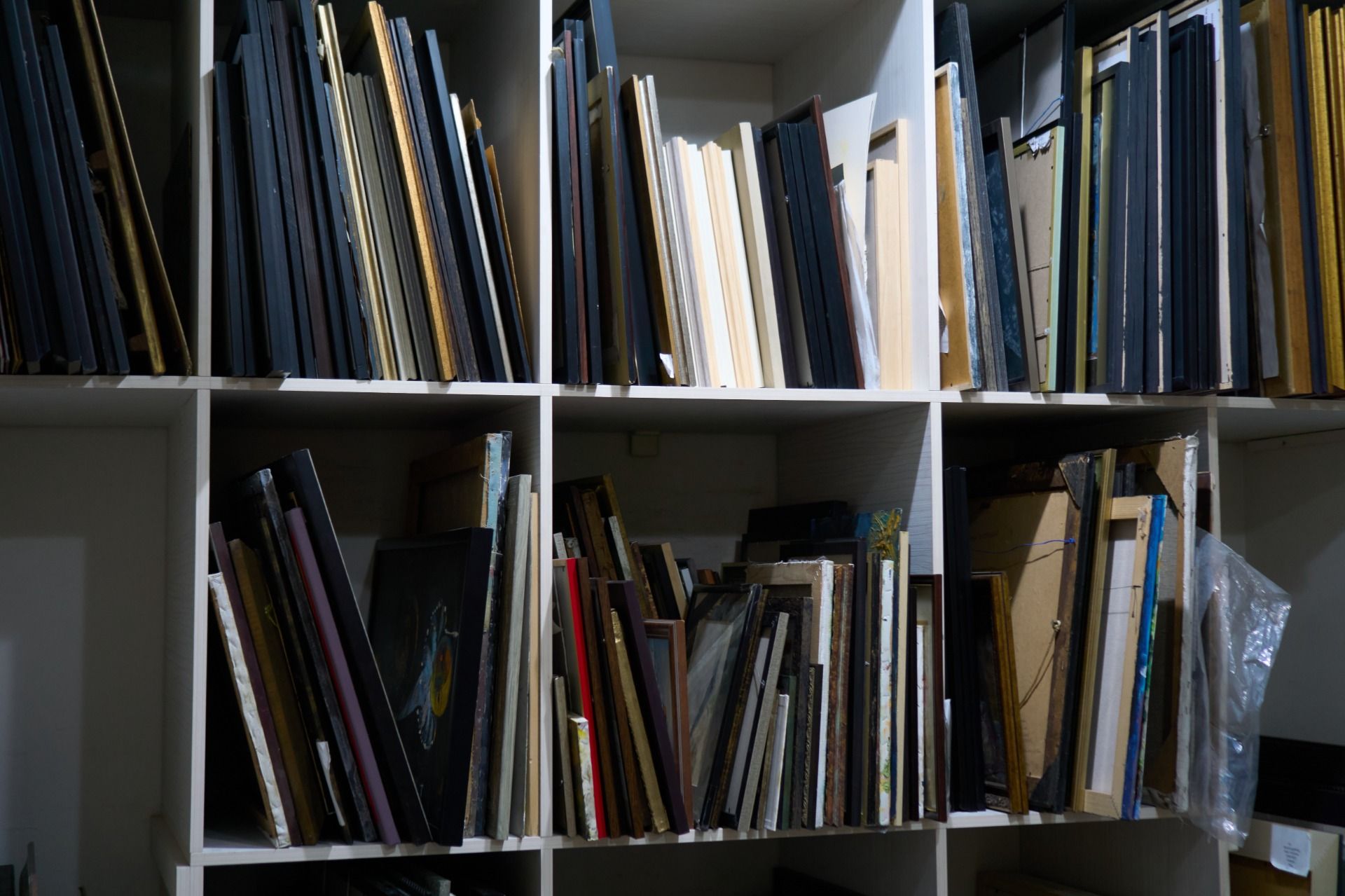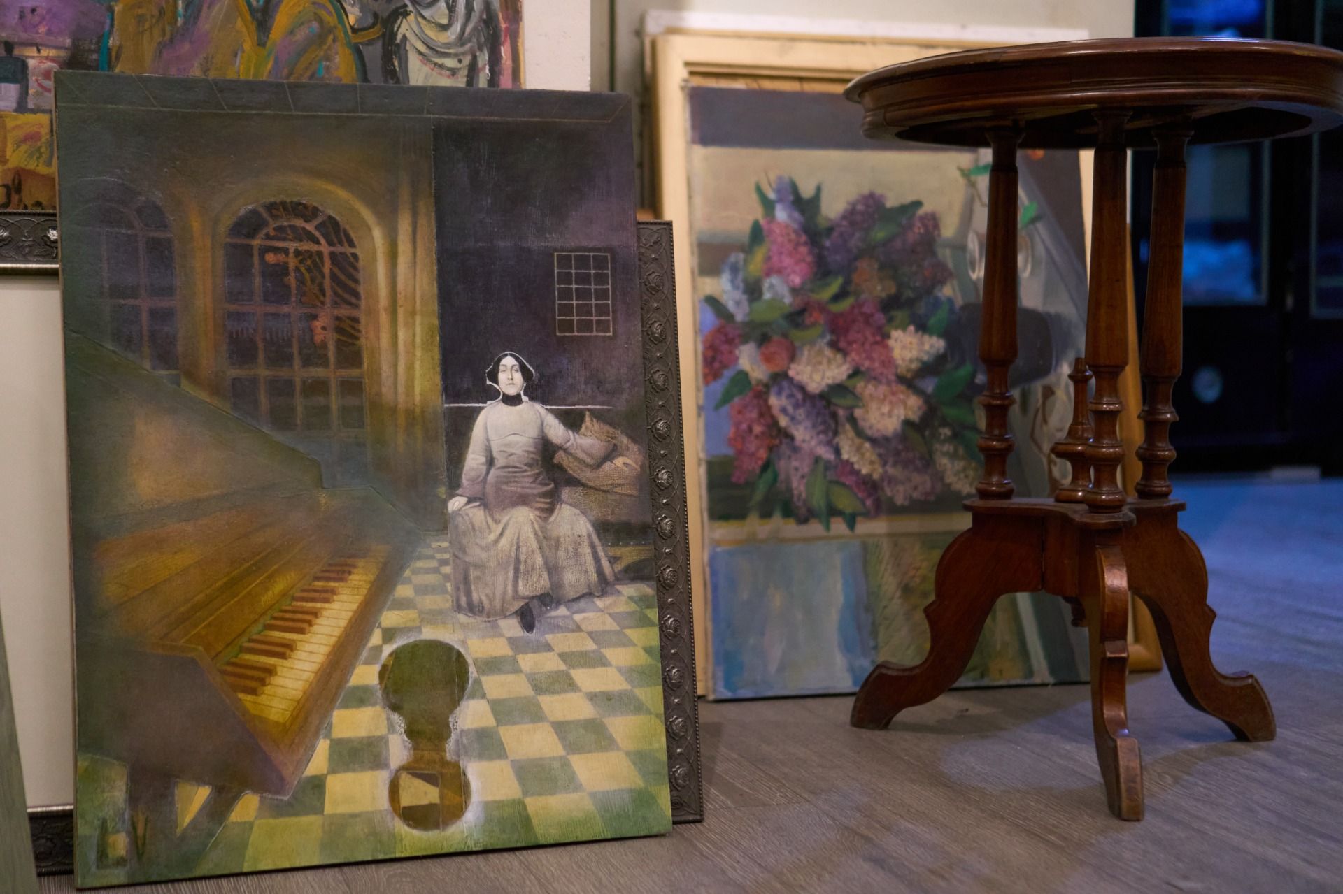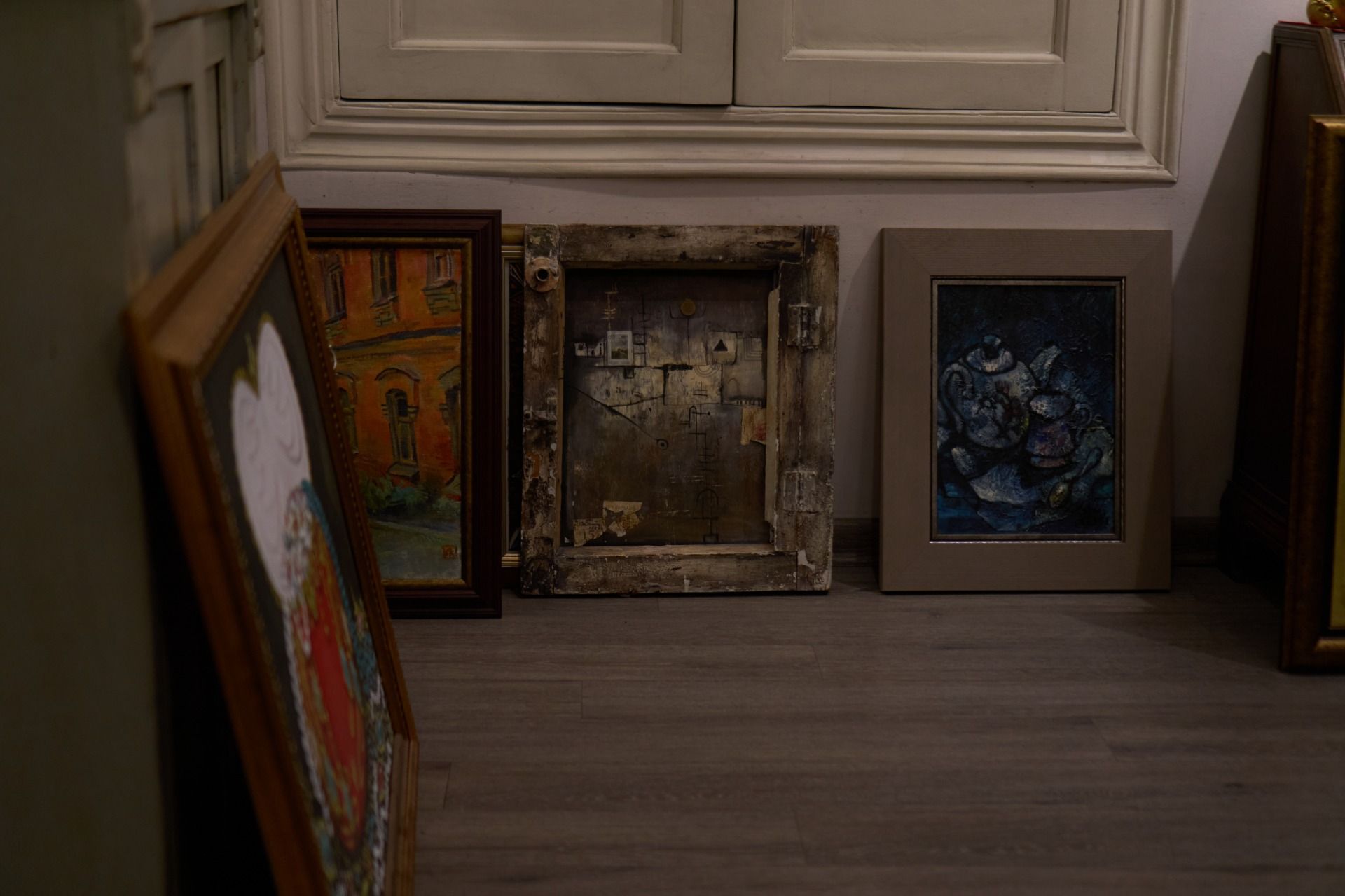 But let's get to the art! Some rooms had a bit more curation than others. The main one was full of children's art and they had been doing exhibitions and events on children's artwork. Some were actually quite impressive. The next rooms were where the chaos began: paintings from various painters throughout time just sat piled up or next to each other. You could spend hours there just looking and finding new things, moving one piece to find another. Large and small canvases of various styles, little organisation to them. One piece would stand out, I'd look at it, he'd take it out and place it somewhere to discuss it, and that would lead to more art. I loved his side of things, it was like entering an archive more than an art gallery, each piece was next to something totally different. And some artists had such diverse styles that you wouldn't even notice they were done by the same people. It was an entire labyrinth of art through different time periods. One of which was an old wooden frame that looked like it had been pulled from a window. It just sat on the floor leaning against the wall in another room. He told us that it was a really experimental piece that was done during the Soviet Union when there was a brief lift on who could create and display art, to which such pieces ended up creating so much disgust in the person that approved such practice that he immediately regretted it and wanted much of it destroyed. Next to it would be still life paintings of flowers, studies of human anatomy. Some on paper with sketches and graphite, others paintings that approached the human figure, capturing normal poses and shapes.
