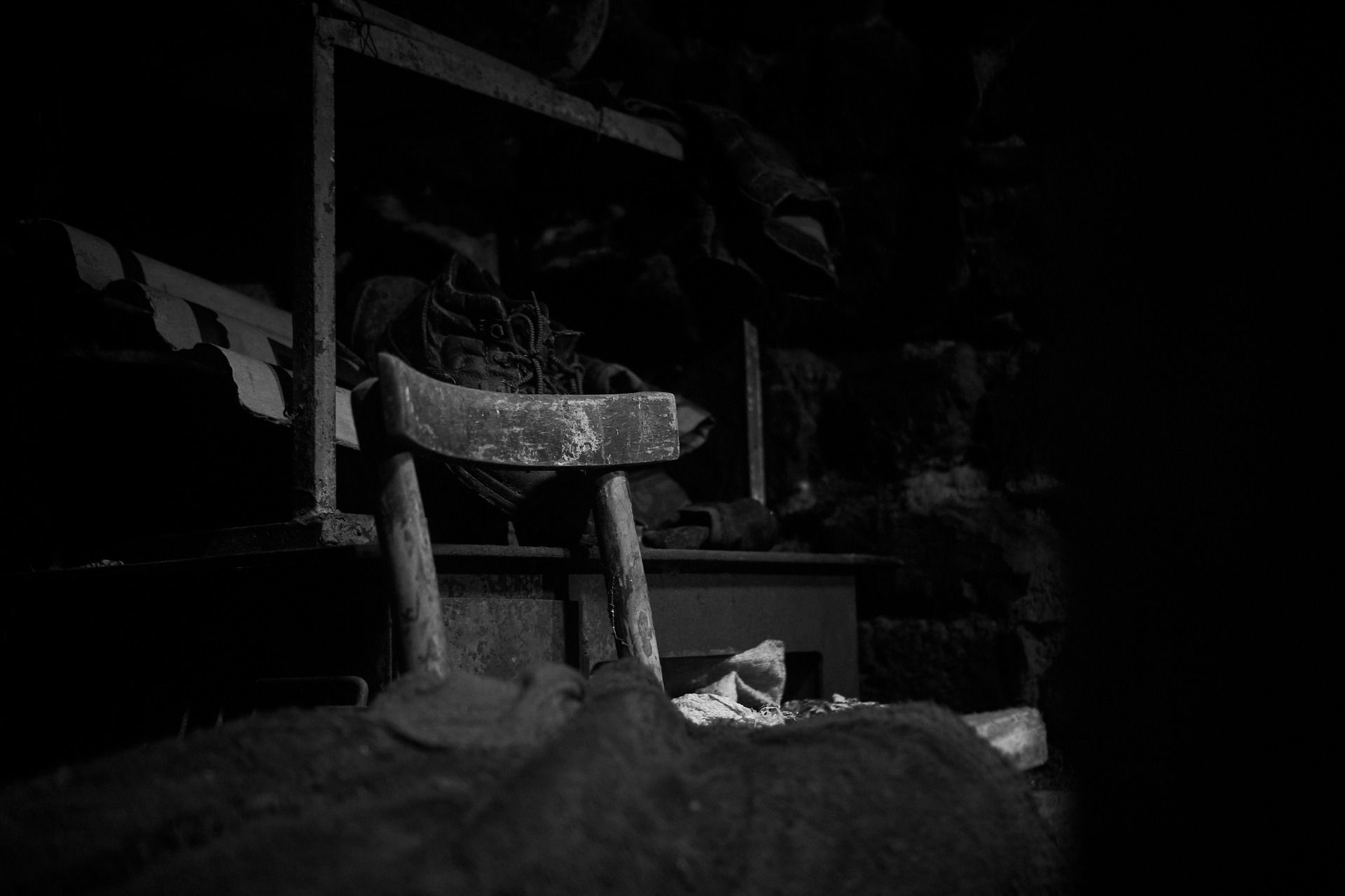 I would take moments while eating to look around the room instead, scanning the various additions to it that had been placed over the years. I asked them how old this building was, as it showed signs of being at least 100 years old, certainly passed down over generations. From the outside, the building's appearance was of large stones, a mossy rooftop that I assume was encouraged to hold in the heat. Large pieces of wood were coated in years of cobwebs above. A beautiful texture on it all from the light. Chipped away with little shadows in them. Various farmland apparatus was wedged between the wood above, sharp objects and blunt objects hat had me question whether I'd be dead in a few moments if one so happened to fall. Everything had signs of age to it, but no real dates could be noted from them. Clearly unused over the decades.