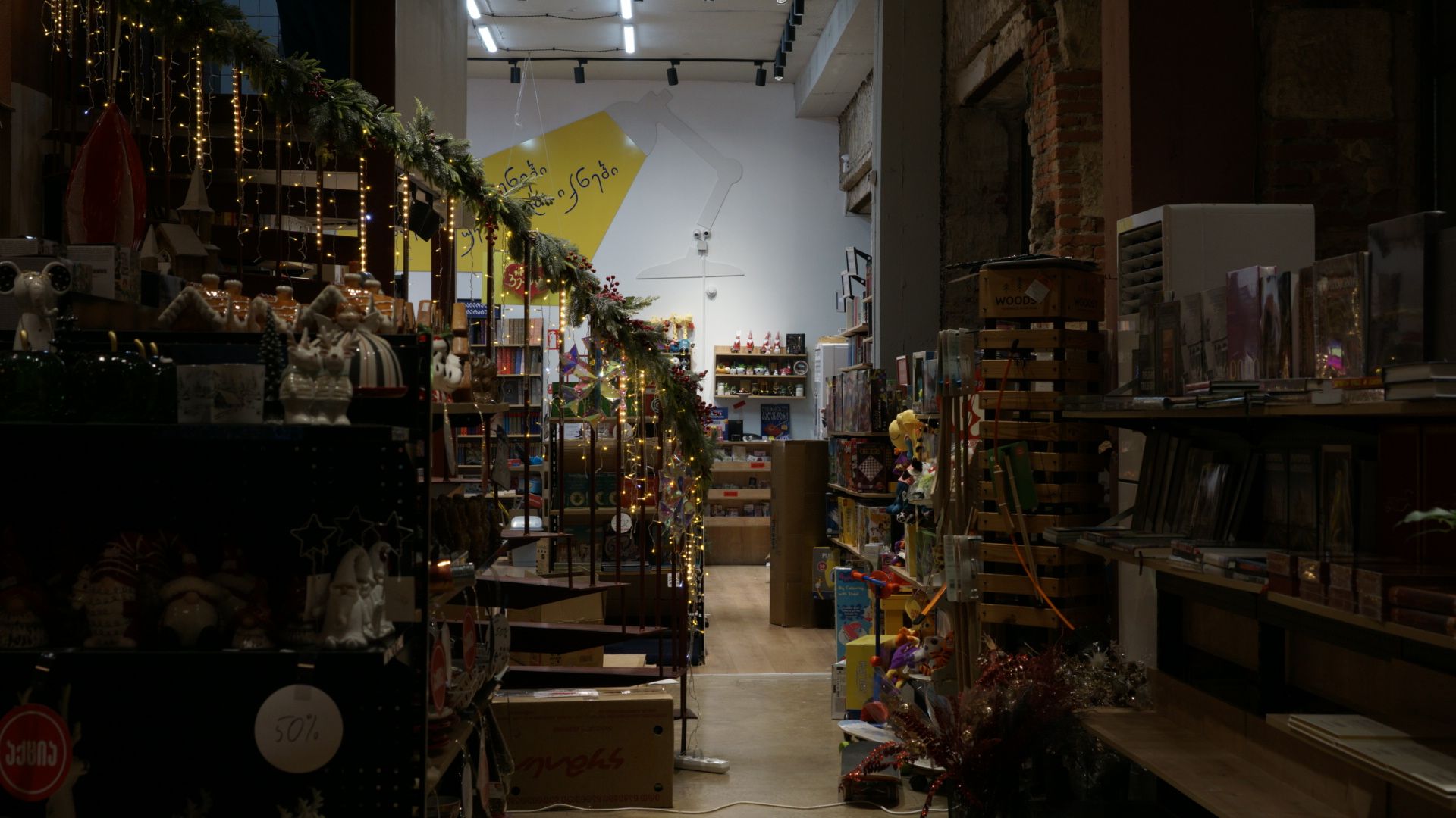 Outside of the food and drinks side of things, the spot was located incredibly central, and half of it was riddled with festivities. Mostly items for sale from gigantic Santa's to various Christmas tree decorations. A bit more in the back was the spot's book options. A large area dedicated to them, but it was a franchise called Biblusi which is primarily a Georgian book shop. So your English options are incredibly limited if you're looking for something there. But that tends to be the norm here in Georgia; most book shops are small, only selling books in Georgian, and maybe a few in Russian. You might still find something there though to grab and sit with, but that's something you do also have to pay for. It's not the type of cafe where you pick out a book and sit down with it while you're there; you are going to have to cough up a few of those Georgian Lira if you want to sit and read during your time there. That's not necessarily a bad thing, just something to consider if you ever find yourself in Kutaisi and wanting a cozy spot to spend a few hours in during the day. While the interior is quite beautiful, you will need to find something to do. Though that does bring me to the next focus in this post: the interior of the cafe.
