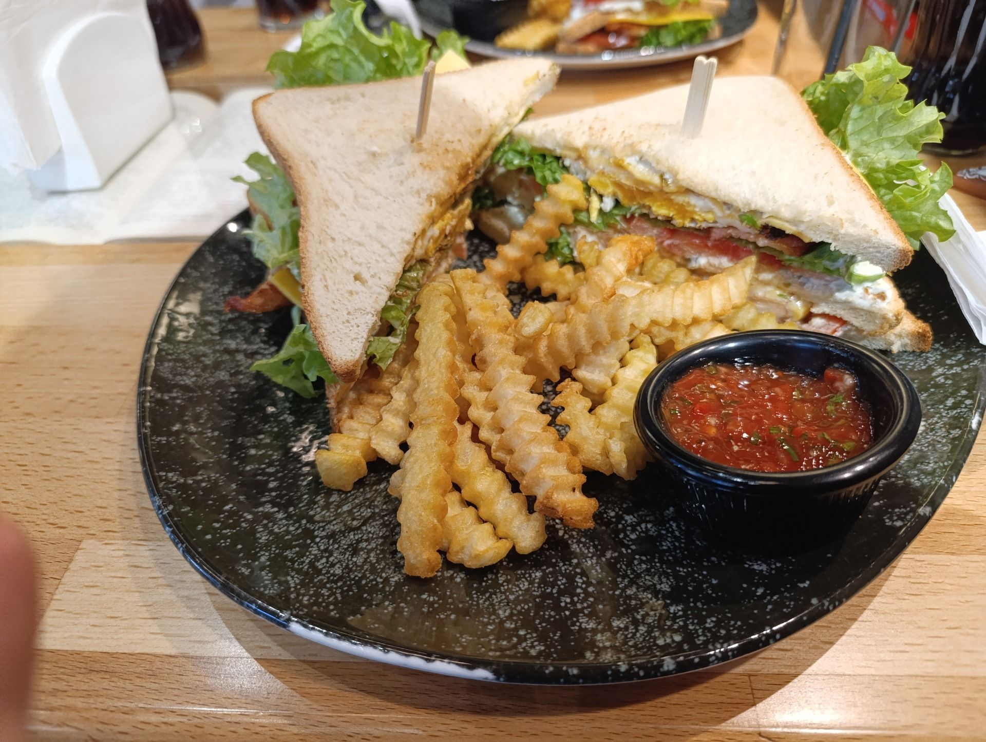 I was more surprised that the place also had a rather extensive food menu which was equally rather cheap. Perhaps not so much for Georgia's average salary, but certainly very cheap for someone from another country on a different currency income. The food impressed me a ton. Everything was fresh, and tasted incredibly good. Not to fail to mention the insanity of the portion sizes, you really do get your money's worth. 28 Lari for a Club Sandwhich that seemed more like it was three meals in one. That's about $10 for a promise that you won't end up hungry again until tomorrow. It was the first time that I saw something like this here in Georgia. Amazing prices, incredibly good fresh ingredients and portion sizes, but also a variety in what the establishment offered. Not just being a book shop. Not just being a cafe. Having a restaurant side to it. A working space. A bit of everything I think most people around the world would already be familiar with. Though Tbilisi is quite odd: almost every cafe that seems decent just tries to milk people with laptops with co-working 'spaces' that are just a way to get them to pay up for having a laptop with them. And many places that do attempt to mix up the cafe aspect with something else just fail to really create an atmosphere: obnoxious music that's either rap or just too loud. Poor staff, and the rest I already mentioned.