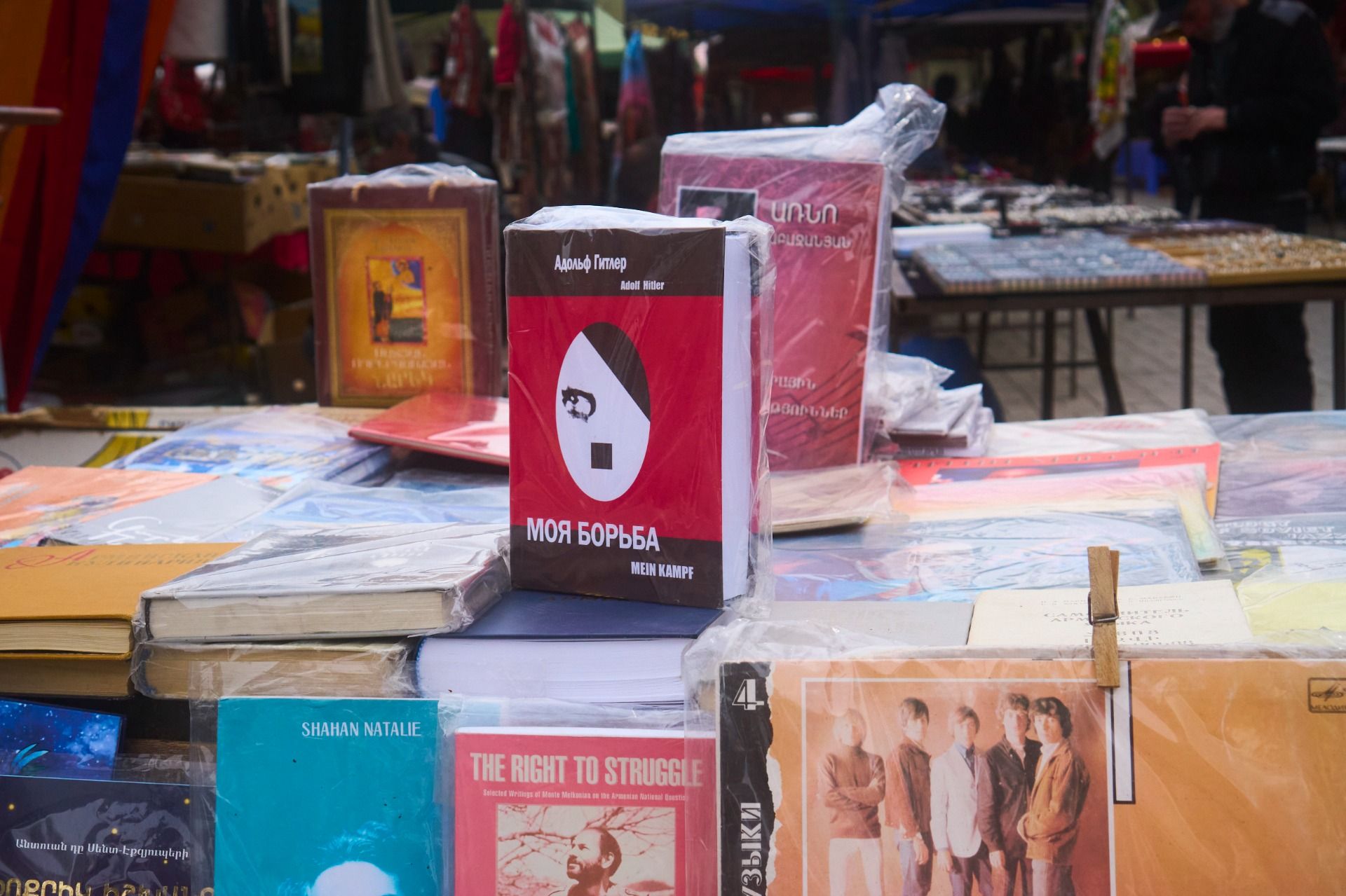 Sunday markets in any place tend to be a good way to get an idea of what the past was like there. A way to see what people owned, the various goods that were once important to people that are now considered secondhand trash, for the most part. Attempted to be sold for whatever they possibly can make, the exchanging of various goods in pursuit of just collecting more clutter, ultimately. The cycle of consumerism. But it's a great way to see the interests of people, the literature, the old music that has probably exchanged hands many times over the years, what sort of music managed to enter the nation in such times, especially around the tighter era of a communist nation. A big surprise for me was immediately seeing various editions of Hitler's Mein Kampf book. The story that rose the man to his higher fame, leading to much praise and support from the people for his hardships faced, and want to see Germany as a more successful nation. A huge counter to the entire ideology of even modern Russia and former republics, which often censor the book to this day. These were at the very entrance of the market, so it gave off quite the impression from the very start. Behind it, a series of the typical nonsense, the same crap you tend to find everywhere else.