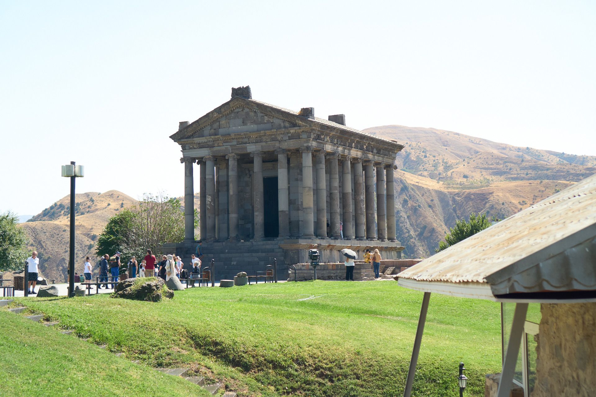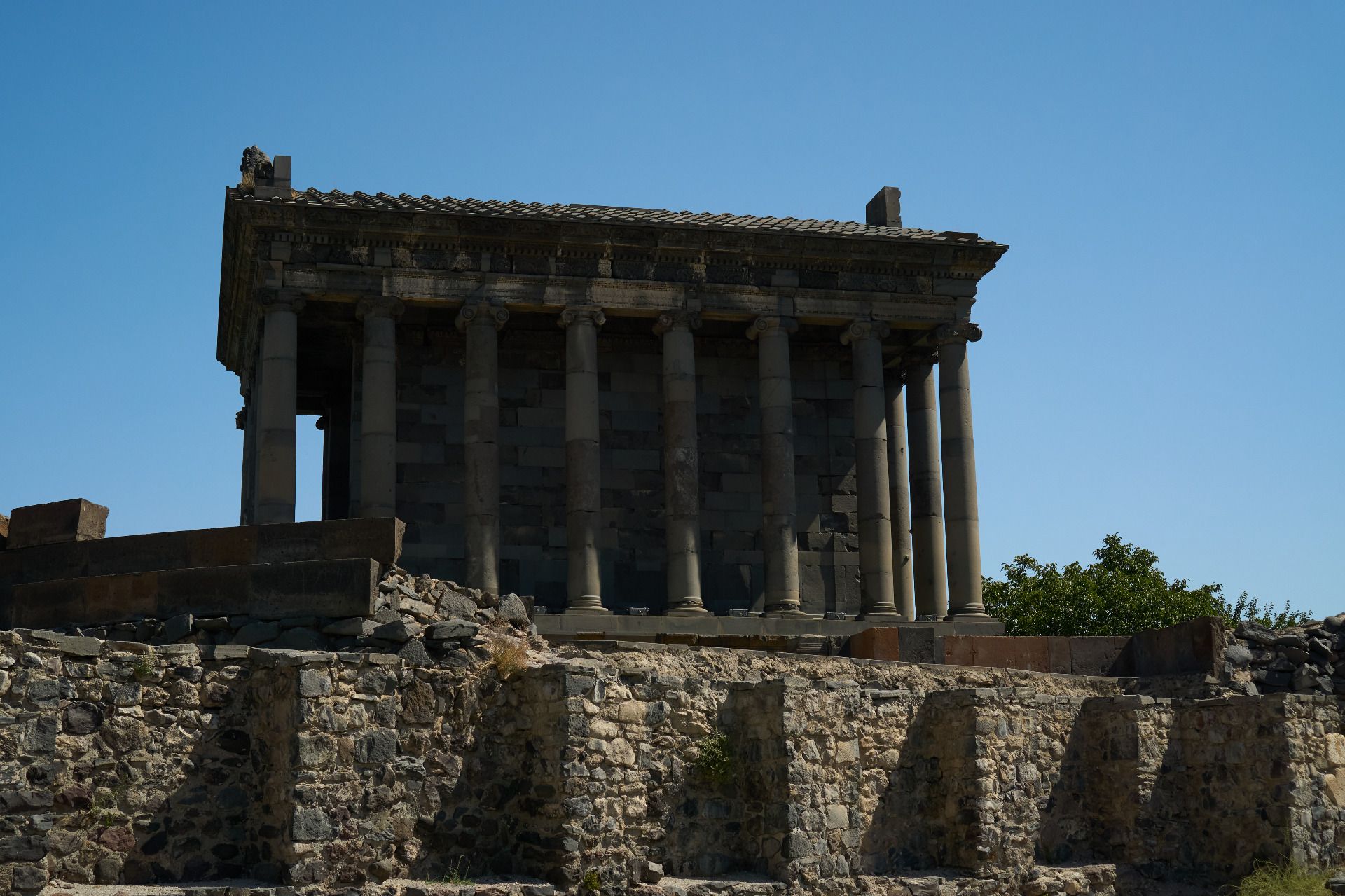 The Temple has had much speculation around it regarding its purpose, though the general belief is that it was built in dedication to the Sun God. Now, if you've ever been to Armenia during the summer months, you'd know that the sun is insanely intense. It's not much surprise that upon a large hill and cliff side, overlooking vast canyons, that people would dedicate such a beautiful building to the God of the Sun: Mithra. The building collapsed during an earthquake which is relatively common for the region. Not too far away in the 1980s the second largest city in Armenia was almost levelled by an earthquake, to which the town never really recovered. Only now is it seeing the funds to rebuild. To walk through the city of Gyumri is to witness much devastation. Back to the Temple of Garni, however: the Soviets chose to reconstruct the building with the debris. Some excavations beneath the foundations supposedly imply another building that predates the Romans by afar. Even predating the Armenian language, where another once stood in its place by the previous settlers within the region.