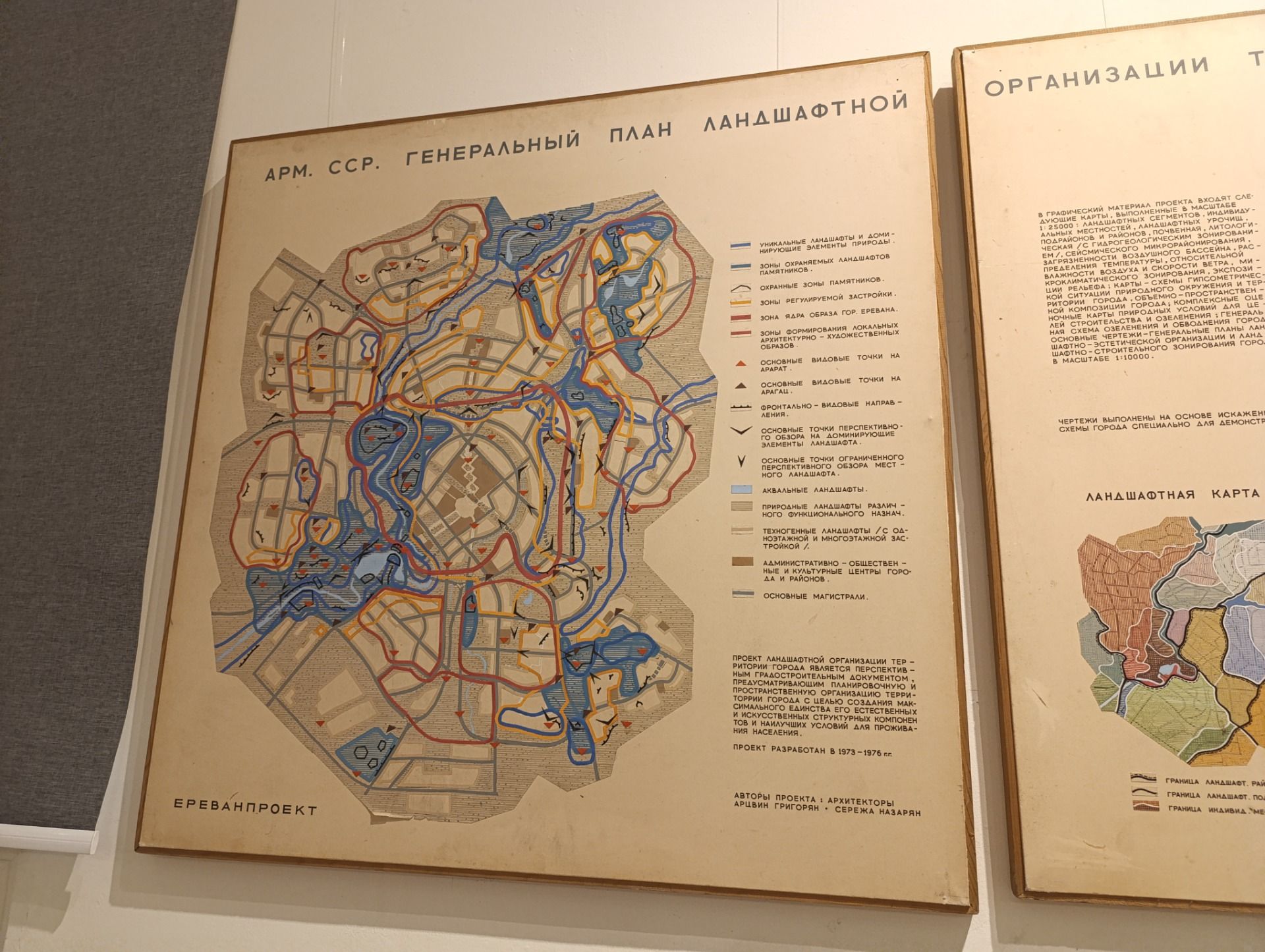Many of the displays showed some of the more modern approaches to Yerevan's architecture. The city is one of the oldest in the world, so it held this connection between excavation and preservation of the old Roman Empire, as well as the more recent developments. Huge maps showcasing the original Yerevan plan, the little districts that were in place. It's surprising to see it really hasn't changed much, it still has the same layout, albeit just more buildings. The most central part almost felt unchanged. The newer buildings featured some schematics, huge Soviet era posters in Russian and Armenian that detailed the designing of areas that still remained or perhaps had been repurposed. Though that was mostly the full extent of that museum's room. It was the other hall that stood out to me a little bit more, featuring a deeper look into the designing of the city and the buildings, from churches to the magnificent Cascade. For some reason I was told I couldn't take photographs with the camera in here, but I was allowed to use my phone camera. I should highlight that both of these are also free to enter and accept donations.