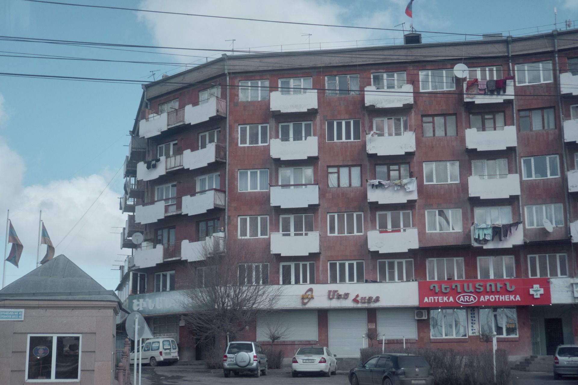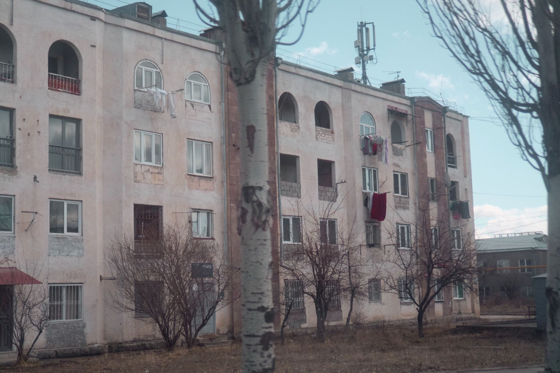 Like much of the areas around Yerevan, Gyumri was mostly residential. Old apartment buildings from the Soviet era, rundown and with their own additions over time that gave certain homes a little more personality to others. This is the norm from what I have seen. People that have lived in these apartments for decades, generations passed down as families keep the homes they have. Even the most Soviet of apartment buildings in Yerevan have unique colours on each floor, almost resembling something like a huge block of Jenga. People adding balconies to their homes in the sketchiest manner, washing lines dangling from the windows to save space and money; but the most interesting thing to me is always how the windows look. The ways in which the architecture finds a way to remain unique. Each having a very different style, some very brutalist, some a little more modern. But as always, it's always clear where the development stopped, or where the family either died out or moved on out of the area. Certain buildings clearly mostly empty.
