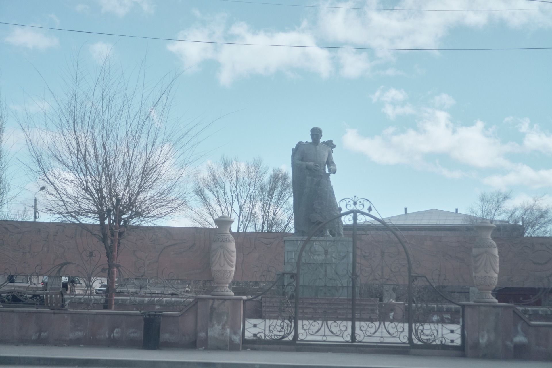 And it wouldn't be a pass through a former Soviet Union city without the presence of Soviet structures. Unfortunately I didn't have time to stop and see what this one was pertaining to. But it did tower over all else, with a wall that held some sort of Armenian and Soviet pattern to it. Again, the norm for this sort of area. And odd how such structures of importance are just left ignored. I look back at England where even in the most remote of places, it's empty. Rarely a sign of anything dedicated to anyone outside of a park bench somewhere. I admire the passion the Soviets had for preserving the names of individuals with importance to the Union. Of course, much of it served as propaganda, but much of it also paid homage to those who really had paid their dues to humanity. Scientists, poets and writers, those who had given their lives in the Second World War.