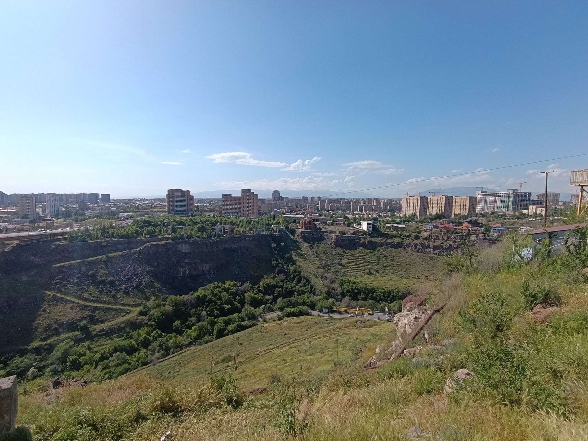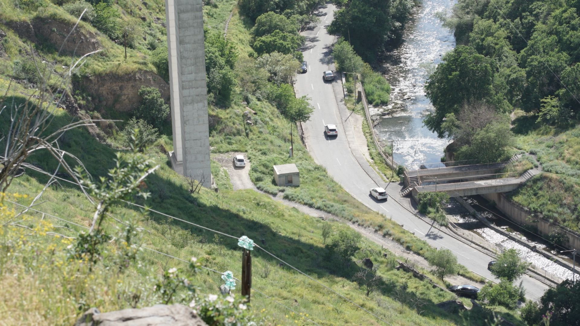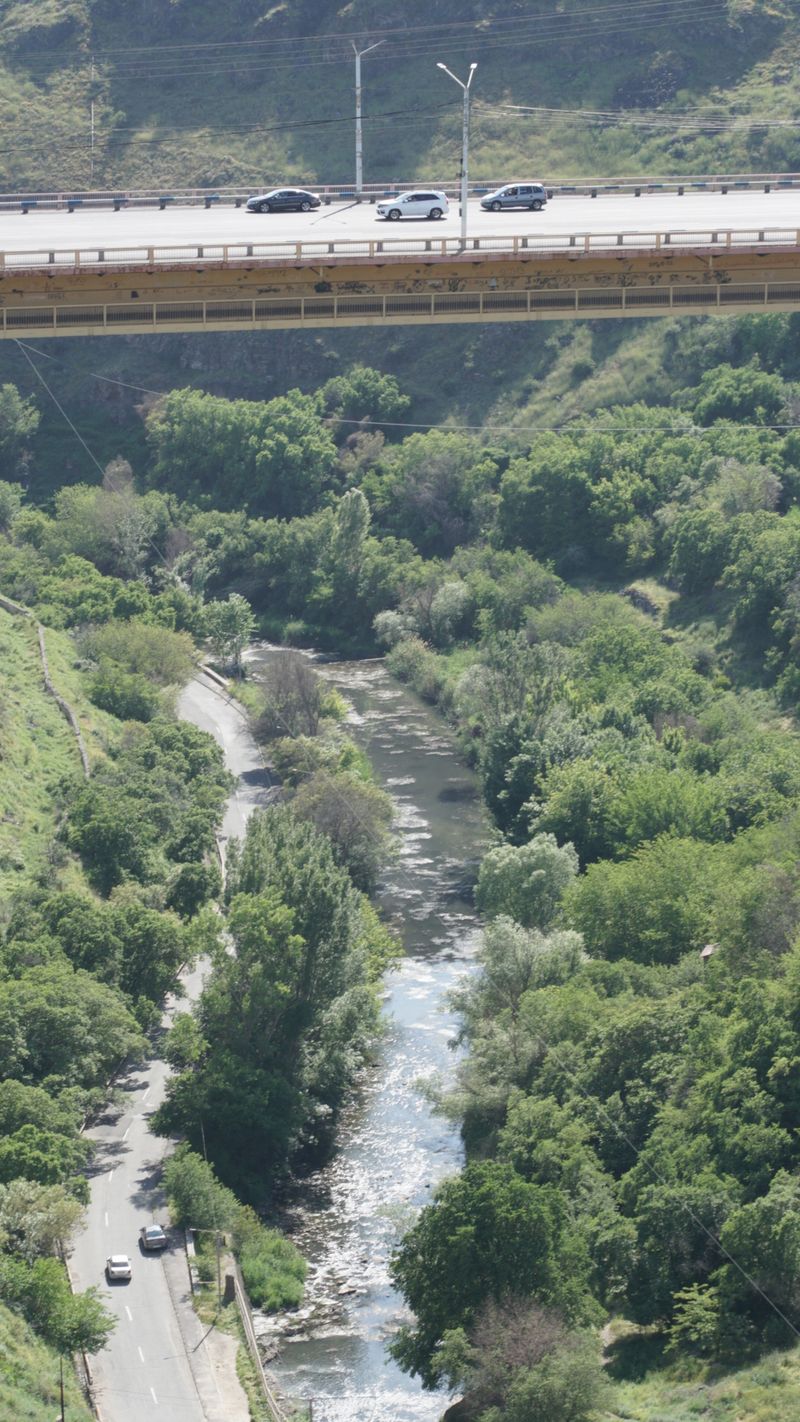 I spent several hours here in the end, and not entirely for the purpose of being creative. Later on, seeing a bench that overlooked another part of Yerevan with a big canyon between the two, a group of displaced Armenians as a result of a recent conflict in Armenia with Azerbaijan would come. And they would speak to me about life in Armenia, England, and general preferences in things. We talked about food, photography and film, and the natural landscapes of Armenia. This park didn't feel like something empty, it had a bit of everything for everyone. To the point where you can lay in silence, you can stumble into strangers and have conversations, and you can admire the nature. But also, that huge monument remains in the centre, not always visible, but there to remind. I continued to walk around, to photograph the trees, the light coming through the leaves, the views across the river and bridge. I wished I had my drone with me at that point; perhaps something for another time.