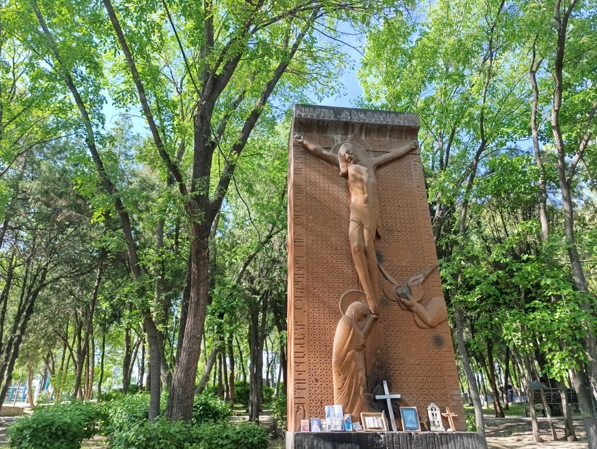 Located in Nor Arabkir Park, which translates to New Arabkir Park, New Arabkir being the, well, newer version of it. This has quickly become a favourite location of mine whenever I'll seek an escape from the city but also want a genuine natural setting to relax within. Parks these days tend to be a bit over-designed in my opinion, losing some of that natural environment and feeling a little too manufactured. This felt like I had stepped into a little forest, with a small cascade (that I assume has fountains operating during summer) that leads straight to the monument itself, though you can walk around the park and see the many other little monuments that either refer to Armenia's strong religious ties to Christianity, or again art installations. Though there's a mixture of former USSR architecture here with some little seating areas and now abandoned buildings that seem as if they're starting to get some attention again. I like the park's design for a major reason: it encourages you to come and sit. And by doing so, you're not forgetting those that were lost during that conflict, you're keeping them in memory and spending time with them by keeping them in mind. Attending a space that seeks to do just that: maintain memory.