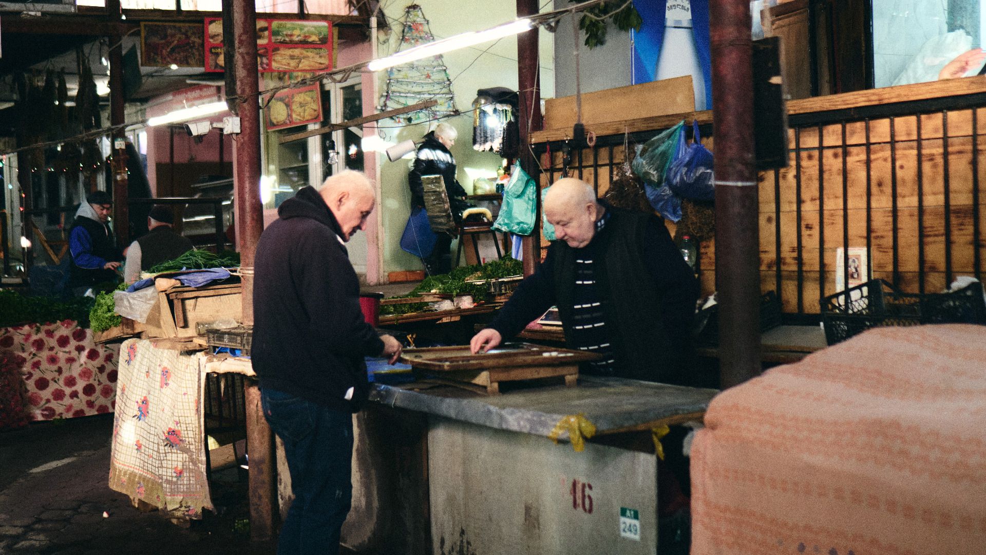 Walking through the market, I could feel the sadness. Signs of life remained with how the men would pass the time playing Nardi together. The sound of dice rolling across the board piercing through the silence of the halls. That slapping of each piece being moved as the players made their moves. This is a common sight throughout various forms of markets, not just the ones that sell food. Often enough it's accompanied by the warmth of some vodka, though in many other cases the smell of little disposable coffee cups and some strong instant coffee that's likely burnt. For the space that all of this takes place within, I couldn't help but think that this location lived on borrowed time. Throughout Georgia, in the more dense cities, it has grown a common coincidence that similar markets have gone up in flames. Overnight. Always an unknown result. Leading to a total destruction of many of these old seller's inventory. At the same time, local governments previously having expressed interest in developing the areas.