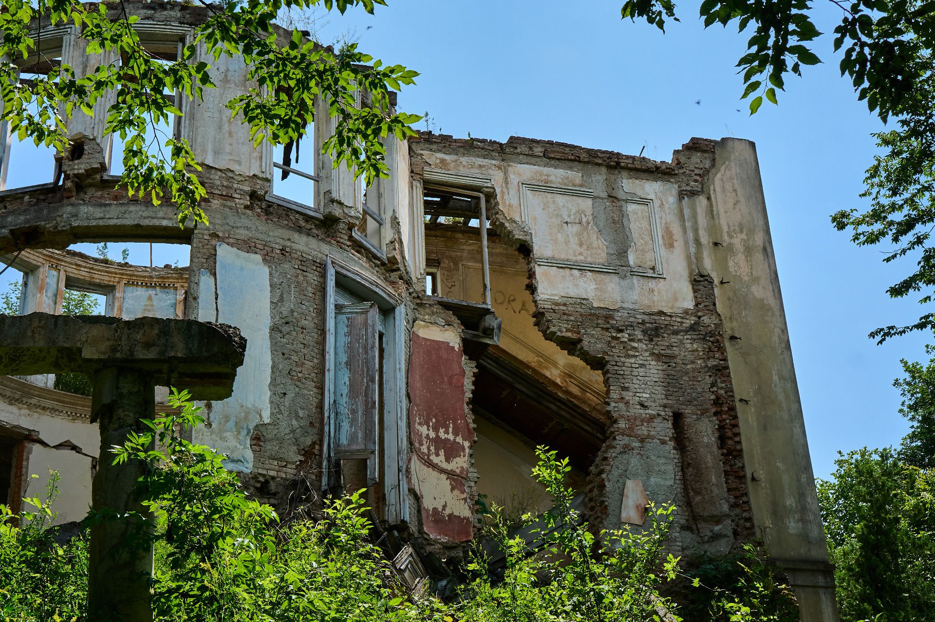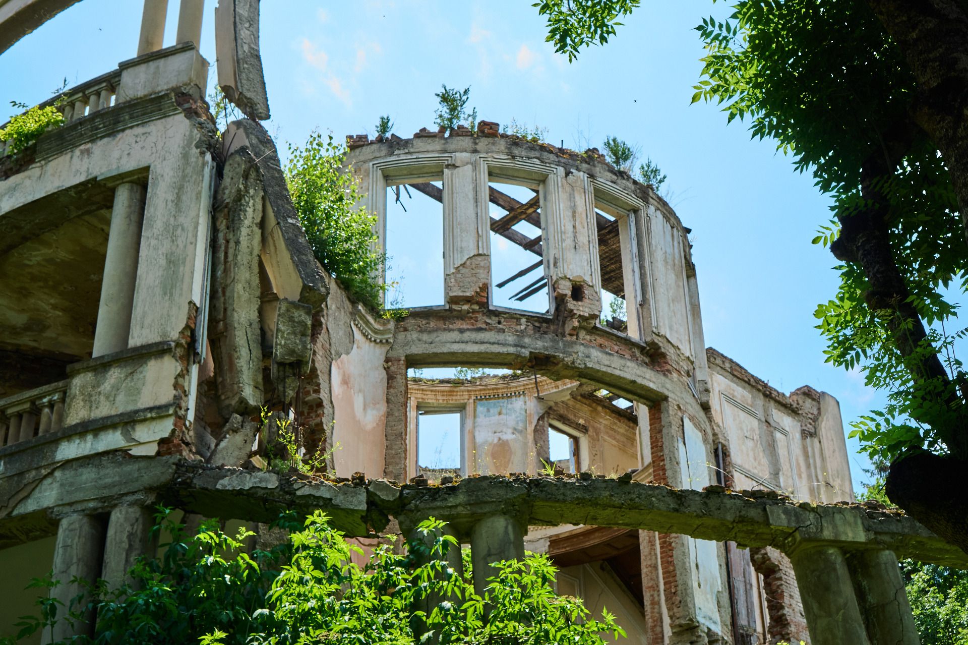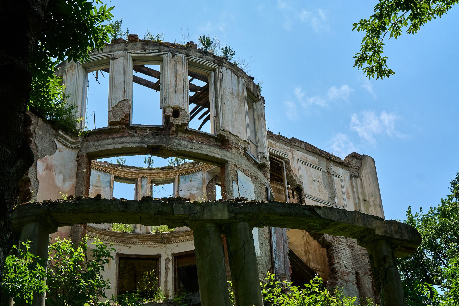 Still, some elements of its beautiful history are present. You can see the wallpaper that briefly remains, slowly peeling and tearing off the walls that remain. The beautiful columns and little pillars of its design. The circular structure itself that speaks of something quite akin to the Roman Colosseum design in many ways. On some walls, and where the ceiling would've been in one of the rooms, you can see the faded paint that would've had similarities to that of the early 1900s, with Renaissance influence. The little signs of beauty that were still visible were incredible, the area had an otherworldly, forgotten feeling to it. Though it was a tragedy that such a beautiful building with such strong historic ties to the nation ended up in the situation it is. No longer capable of reconstruction, now crumbling and reclaimed by the nature that surrounds. In a few more years, there won't be a former villa of Aghasi Khanjyan.