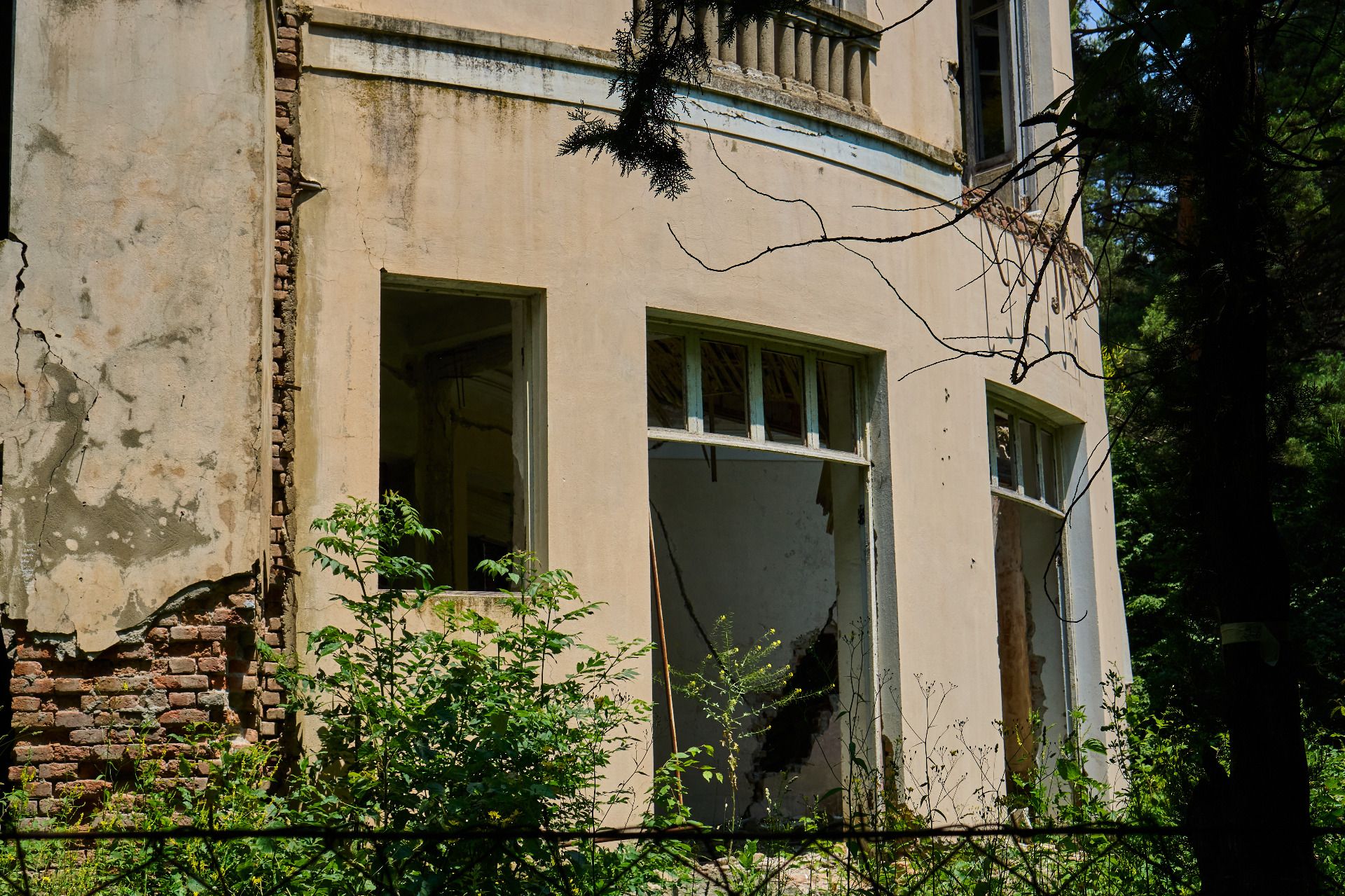 He built this villa in Dilijan in just before the Second World War, just as the Nazi Party was starting to gain some traction and be seen by the eyes of disagreeing other nations. It's said that he only spent one night in the completed villa, before leaving and either committing suicide or having been assassinated. Supposedly found in his room in Tbilisi with a bullet wound to the head. Many conspiracy theories doubt the legitimacy of his death given the tight political situations he found himself in, even going as far as disagreeing with the decisions of Stalin. Since his death, the home became even more empty. A building sitting up hidden within the trees of Dilijan, slowly reclaimed by nature over the many decades. I read that there have been buyers of the land and building over the years, some claiming intent to rebuild and save the building, though it's clear from these images that it never happened and never will. Fenced off, with cameras and warnings stating the inevitable: total collapse of the structure.