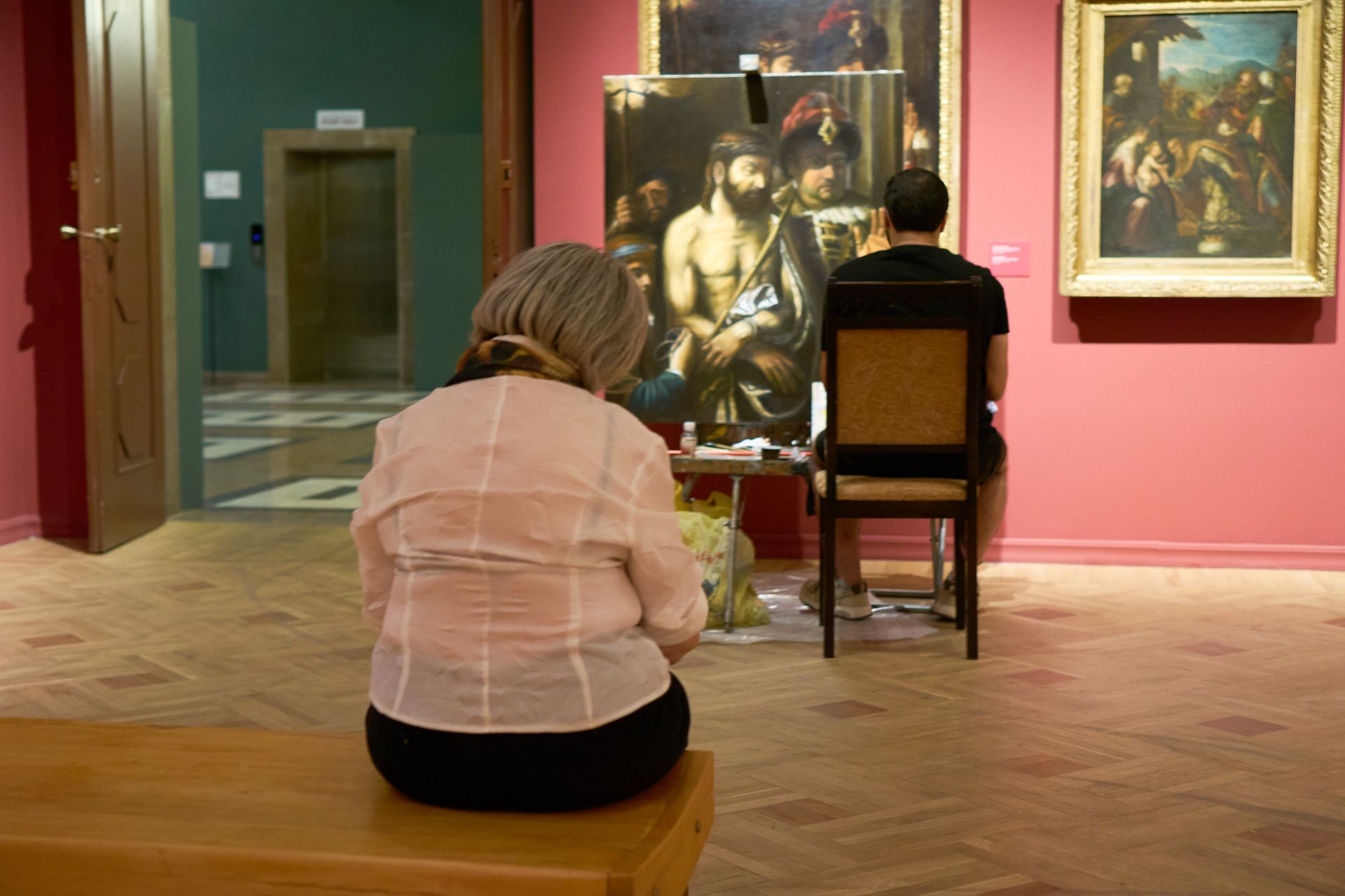 I really enjoyed seeing the differences in time throughout the exhibition, more focused on the paintings of unknown and known painters from the past 500 years. You can see the influences over time, how people's interests in art shifted from more simplistic portraits to depicting more creative scenes, some artists going as far as painting themselves painting into the canvas, breaking that wall even more. And the Russian art really showed this shift, as did the Armenian. Though distinctively different when it came to the more creative and abstract side of things. The Russian art having portraits of people in suits and smart attire, the Armenian side focused more on the cultural elements of the attire, less 'sophisticated' and more within its traditional roots. Though at one point the two nations would still paint in a similar fashion when it came to religious and emotional paintings. Still strong in the compositions and the use of colour. Telling stories through characters with gesture and tone.