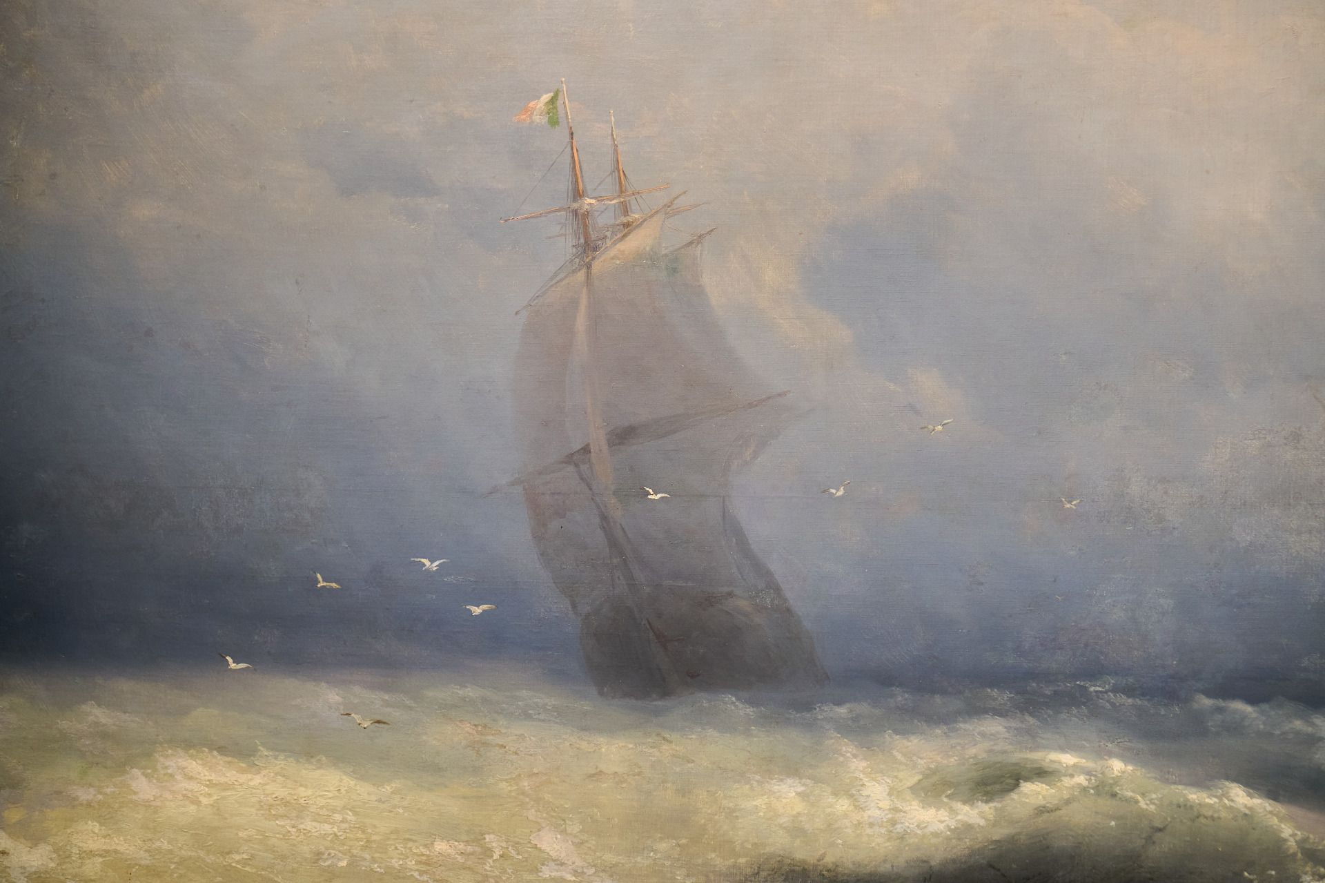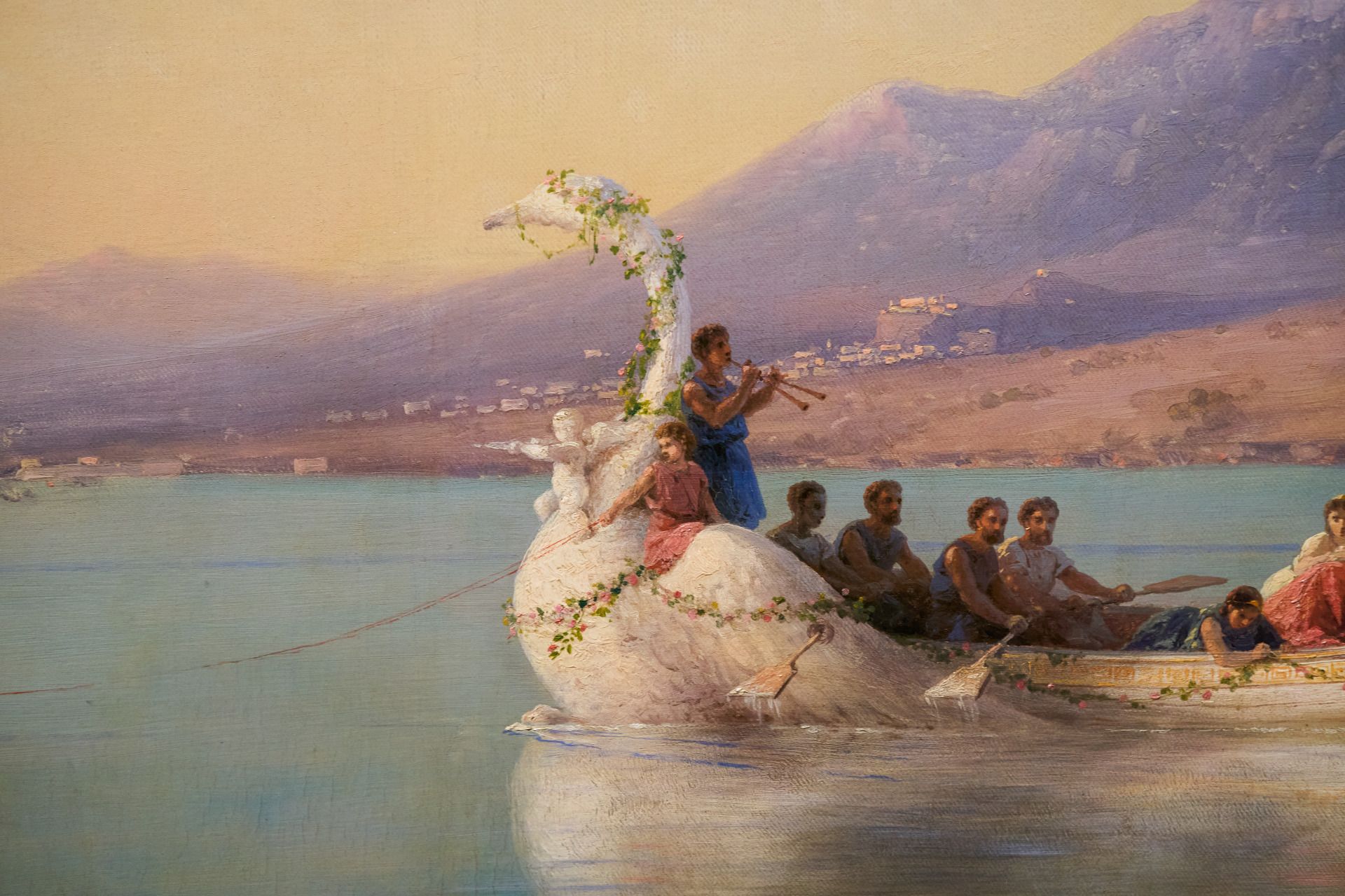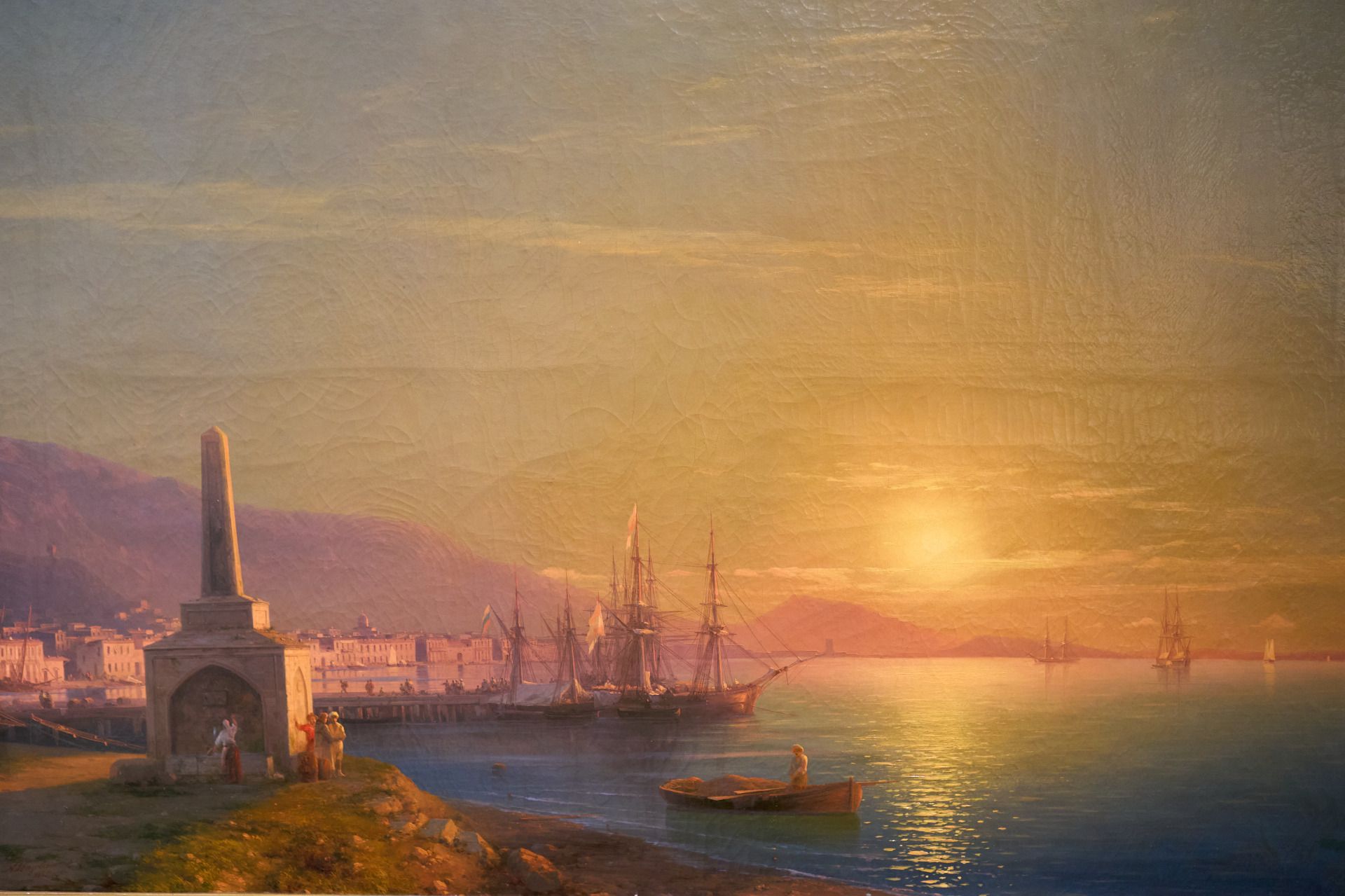Previously at this location there was a display of the famous Armenian painter Ivan Aivazovsky, though his real name being Hovhannes Aivazian. Born near the Black Sea in Crimea but coming from an Armenian family, growing up near the beautiful coast which most definitely contributed to his interests in painting the various sights around the sea. And he's certainly a master at it, with some of the most beautiful paintings of the sea you'll ever witness. Such incredible use of colour to convey either the beautiful gentle warmth of a sunset over still water where a great ship sits dormant. Or the treacherous waves under a cold moonlight, where the ships are struggling to stay afloat. Though he also painted more regular scenes around the coast, not just ones that detail the acts of ships passing through the land. And these are some of his best works as well, scenes of everyday life. People living by the water and performing their day-to-day acts, sometimes with additional injected beauty within: a swan boat with beautiful greens wrapped around it, a child with ducks on a leash.