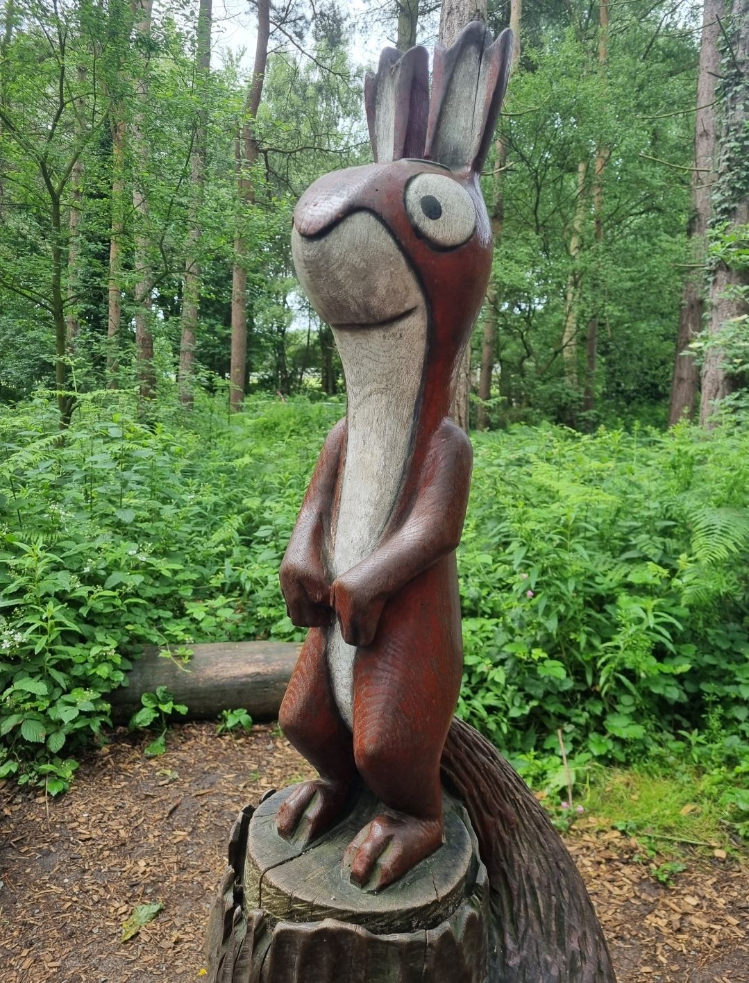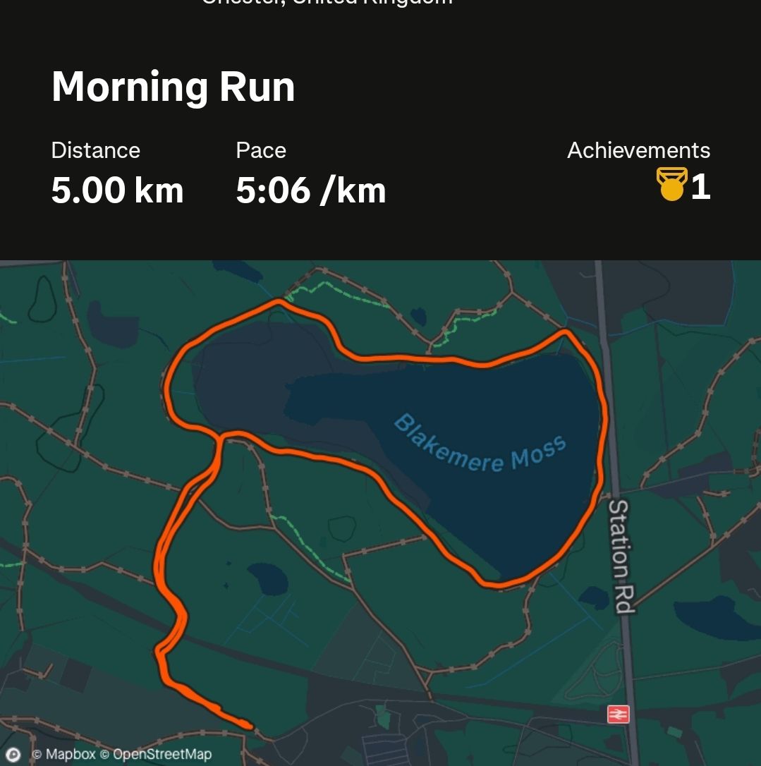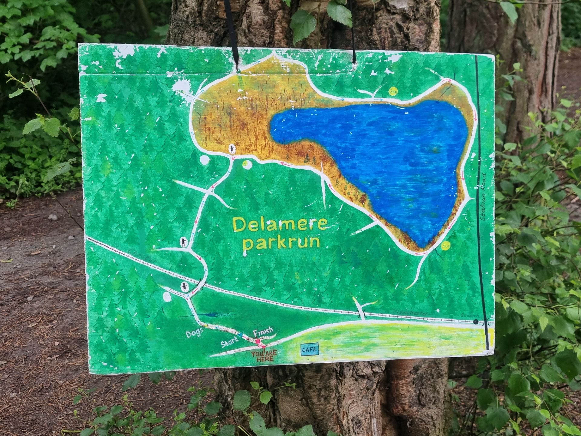 There are many parkruns in England to choose from. My cousin had some local knowledge and had picked a good one for us near them. After more than a 140 different events it is still exciting to get to visit a new location. Delamere was in a nice forest with plenty of tree cover over a hard packed trail path around a lake. The start and finish area was near by a huge cafe and information centre that could easily handle the 400 plus runners and walkers straight after we had finished the event. As most places we have visited on this England trip, parking was quite expensive but it is hard to complain because the facilities were amazing. There were a few up and downs to and around the lake but that is no real excuse for my slowish time. This event had a narrow starting area for a big crowd so it was important to try and self seed, as not to get caught behind slower runners and walkers. I loved the way they started the people with dogs a couple of 100 metre in front then made them do a little extra out and back to help ease pressure in the start area. It worked so well to have most of the faster runners gone as the dogs rejoined the pack. Breakfast afterwards was good and I also enjoyed the local animal sculptures around the the trails. I was a bit worried about the weather forecast for my 499th event so we had a change of clothes really in the car just incase. Luckily other than a warm jacket afterwards they were not needed.