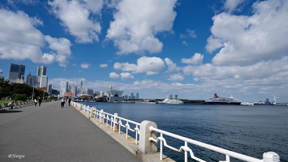 Yamashita Park is a public park with serious kinds of flowers and trees. In front of the park is a panoramic view of Yokohama Port. It's a good place to relax or have a picnic.