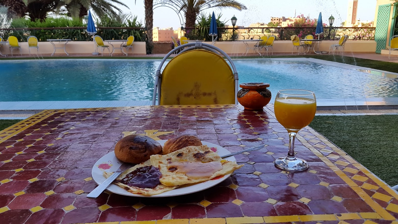 Right in the middle of May I find myself having my breakfast by the pool at a hotel in Errachidia:
