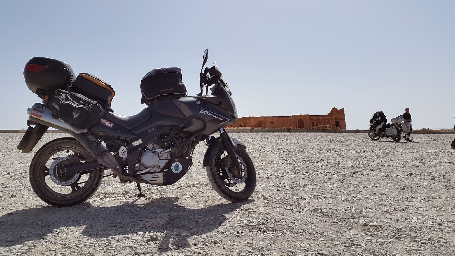 Not a bad scene at all. However, Alan from the group couldn't enjoy it as his stomach became one more in the statistics of Morocco visitors: 40% of them face such issues. We start questioning our plans till he insists that he is OK(ish) to ride and follow us. By looking at him I wasn't exactly convinced but hoping he really is I started packing. Downstairs at the reception I find John looking at some stickers a guy from the hotel was (pretending to be) offering so I stopped by to have a look. When he finished picking the guy asked him something like the price of an overnight for only a few stamp sized stickers. That cracked me up. Guy then tells us "OK OK give as much as you want" so John turns at me "how much should I give him?". Proposing a tiny fraction of what he asked initially I leave the transaction to deal with something more pleasant, meaning loading my bike. Then I adjusted John's rear suspension as it was bottoming out on every single bump with all his and his wive's load. He was super happy with the result and...of we go.