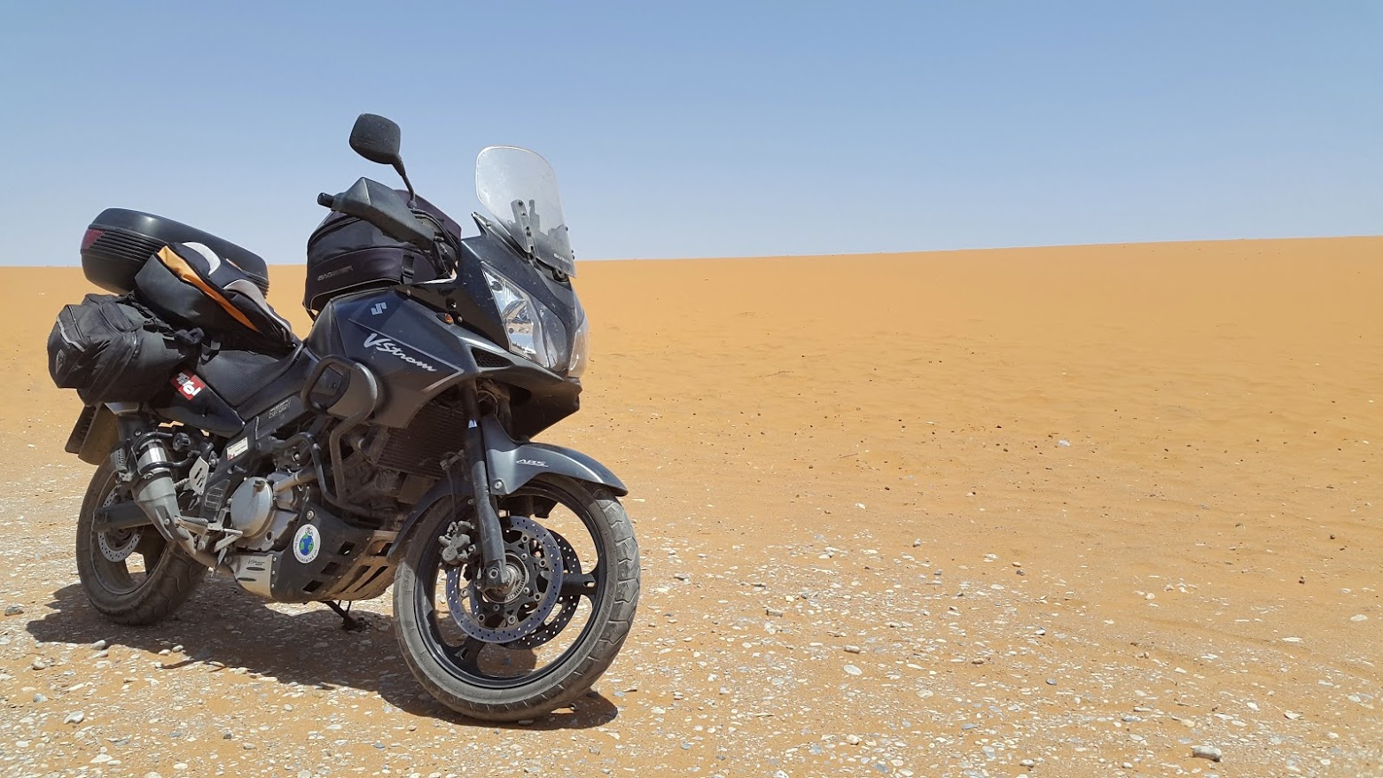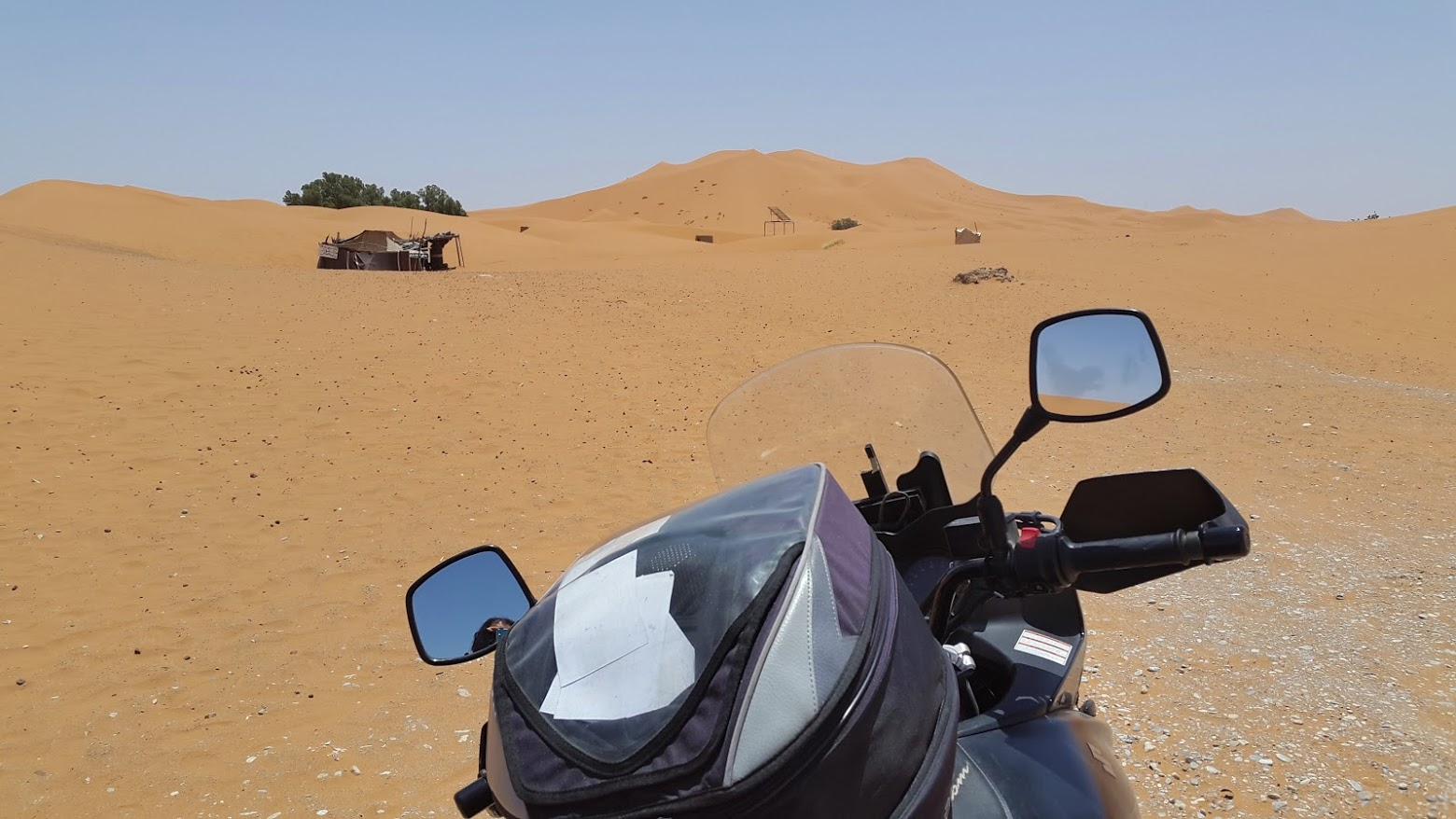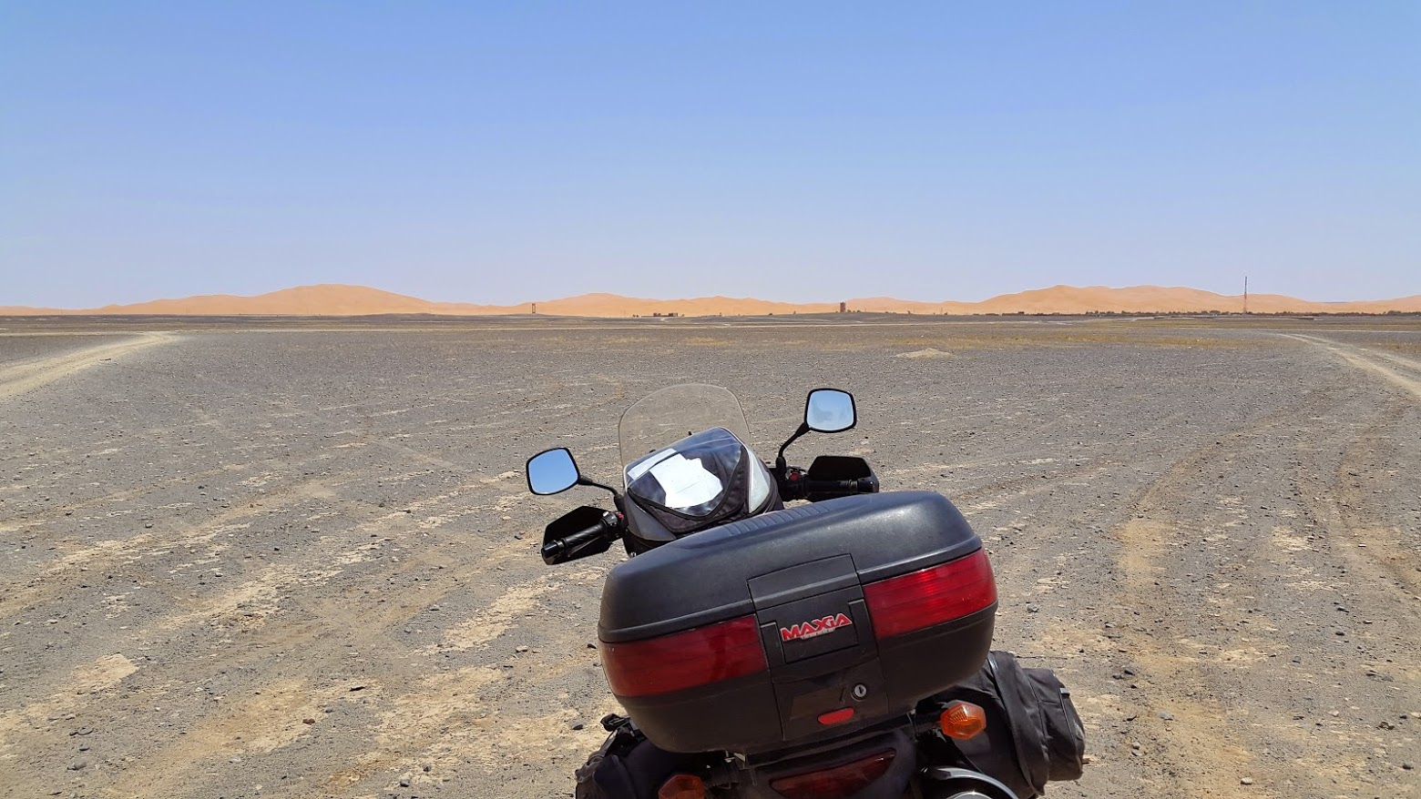 ...and off we go. As we are about to leave the N13 and turn left for Merzouga I stop to take a couple of pictures. Riding in the dirt with the Sahara sand dunes in the background was impossible to miss: