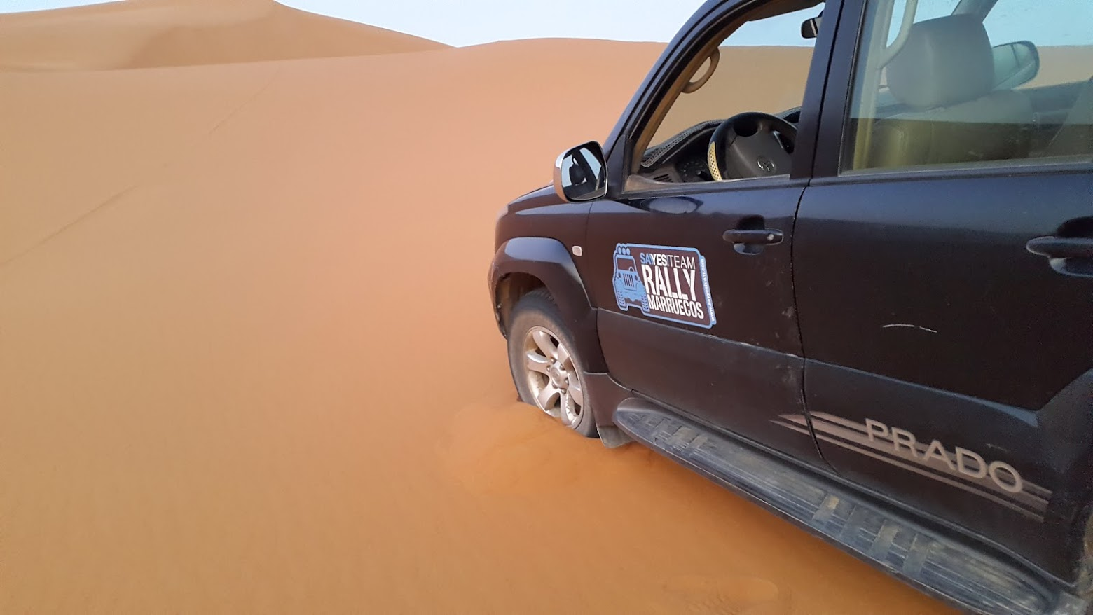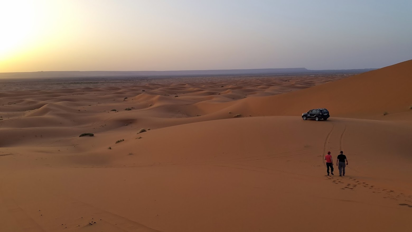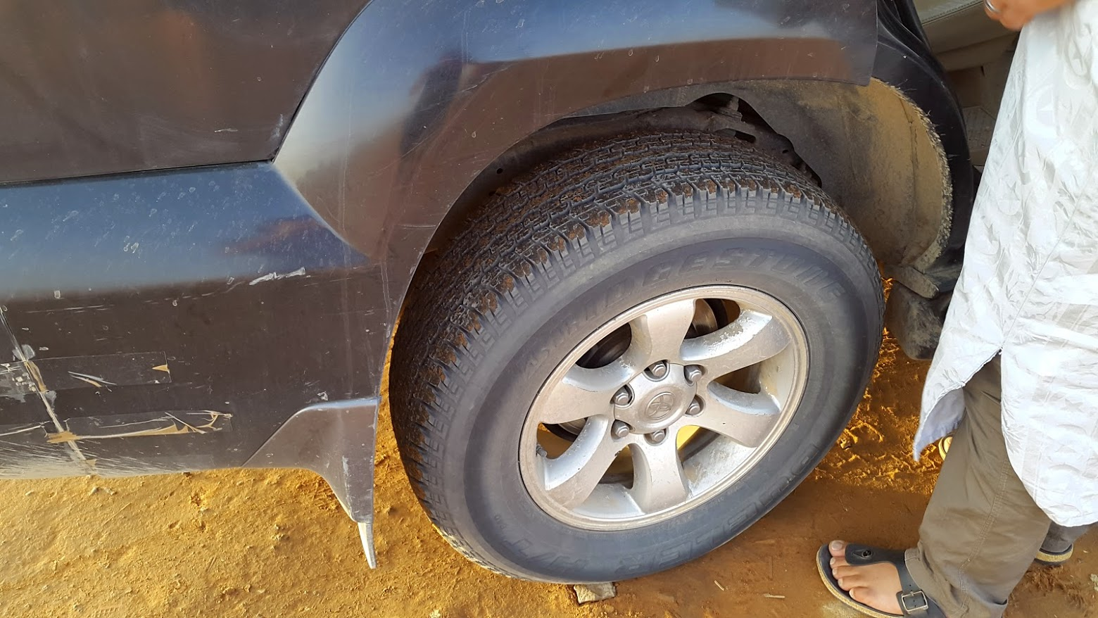 Second to join the "bad stomach" list was Pete. This would keep him from joining us for a tour in the Sahara next day to watch the sunrise. We go to bed early in order to wake early enough and after 5am we put ourselves in a Toyota Prado eager for that experience in the desert. First thing that impressed me was the Toyota. That thing was eating the sand dunes effortlessly even with 5 adults inside. I start thinking "he's gotta have really good tires" but when we arrive I step down and I see... this: