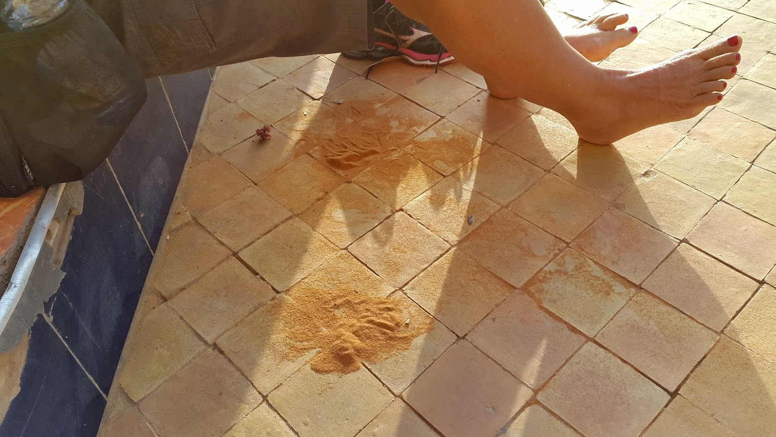 This sand is so thin that we kept carrying bits of it in our shoes for the next week regardless how much we tried to clean them. See Kim's piles of sand to get an idea: