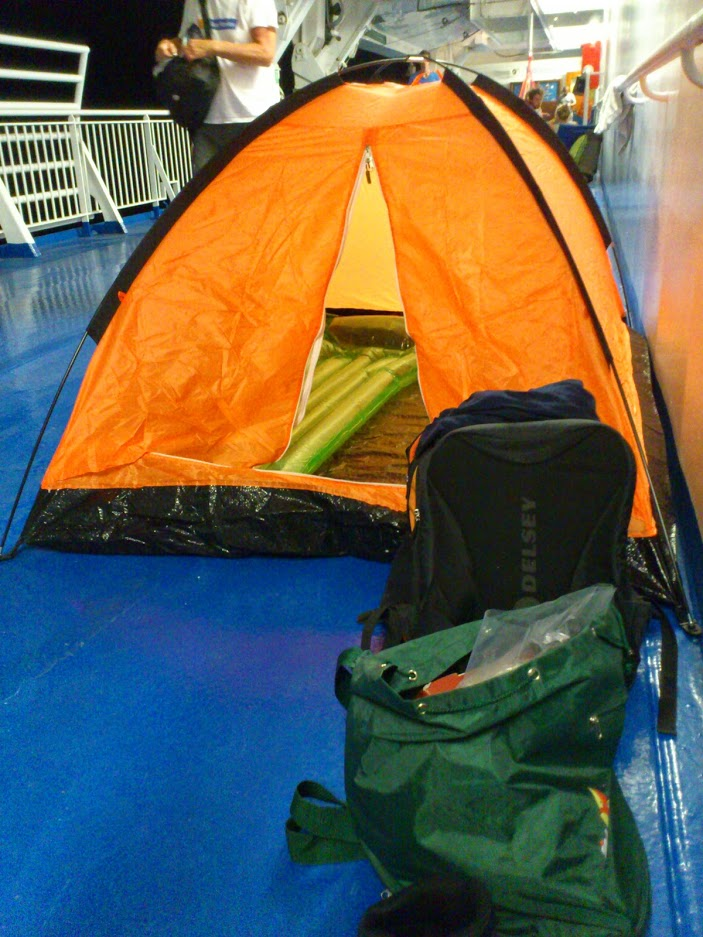 Best way to pitch a tent on a ferry? Neodymium magnets from a hard disk.
