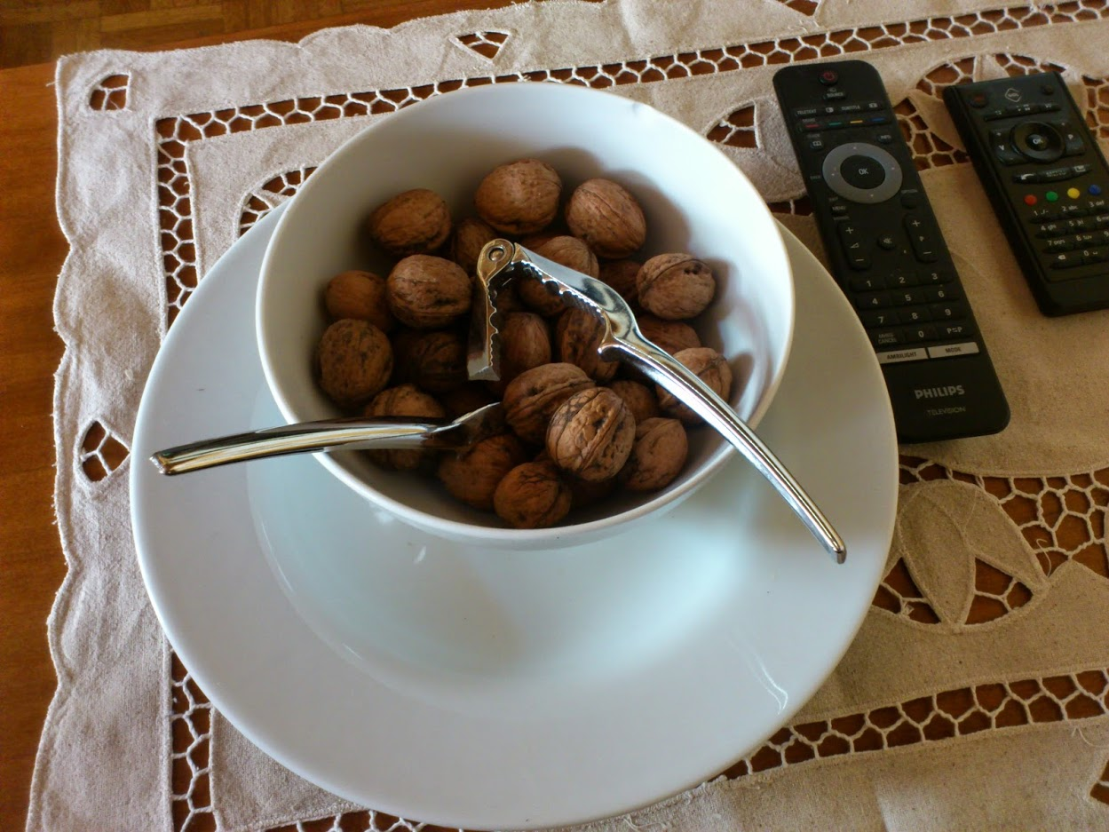 As I come back to my BnB John was away, everything was closed on a Sunday so I called him asking him if it was possible to bring me some food since I was starving and actually he was just queuing for take away food on his way back so he enhanced his order with my needs. How lucky can I be? Waiting and drooling I decided to try some of his walnuts when...yeah...they were a bit hard and I was a bit hard on them too: