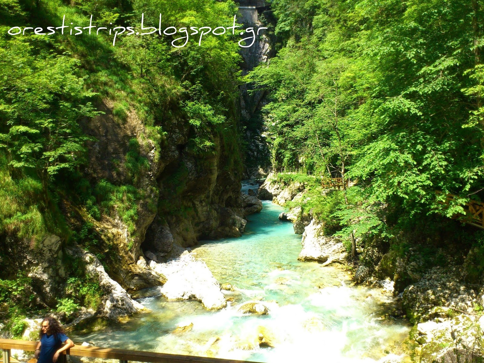 A really epic place was waiting for us - the gorge of the nearby town of Tolmin. John ignored his tired knees and followed me all the way through it. I can't thank him enough. Plus he took some pictures of me - a rare thing for a solo traveller who hates selfies (that's me):