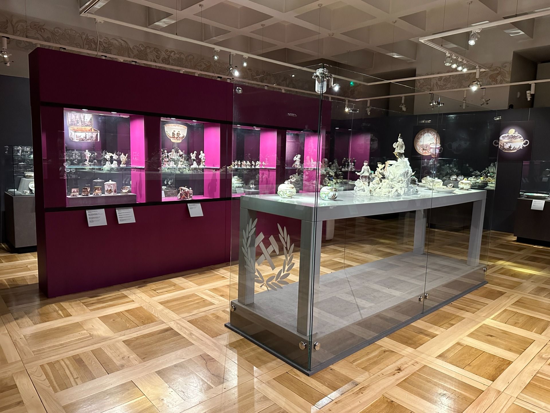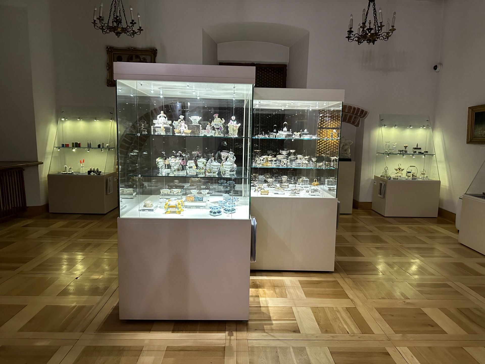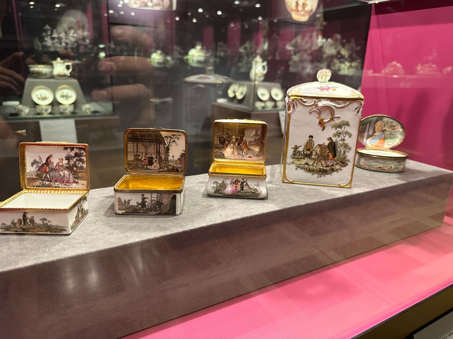 The exhibition featured porcelain sculptures, painted and gilded tableware, as well as jewelry boxes, snuff boxes, pill boxes, and needle cases. Some of these beautiful pieces date back to around 1700, the earliest development of porcelain in Europe. Everything was meticulously crafted. The exhibition featured many unique 18th-century pieces, known only in a single copy.