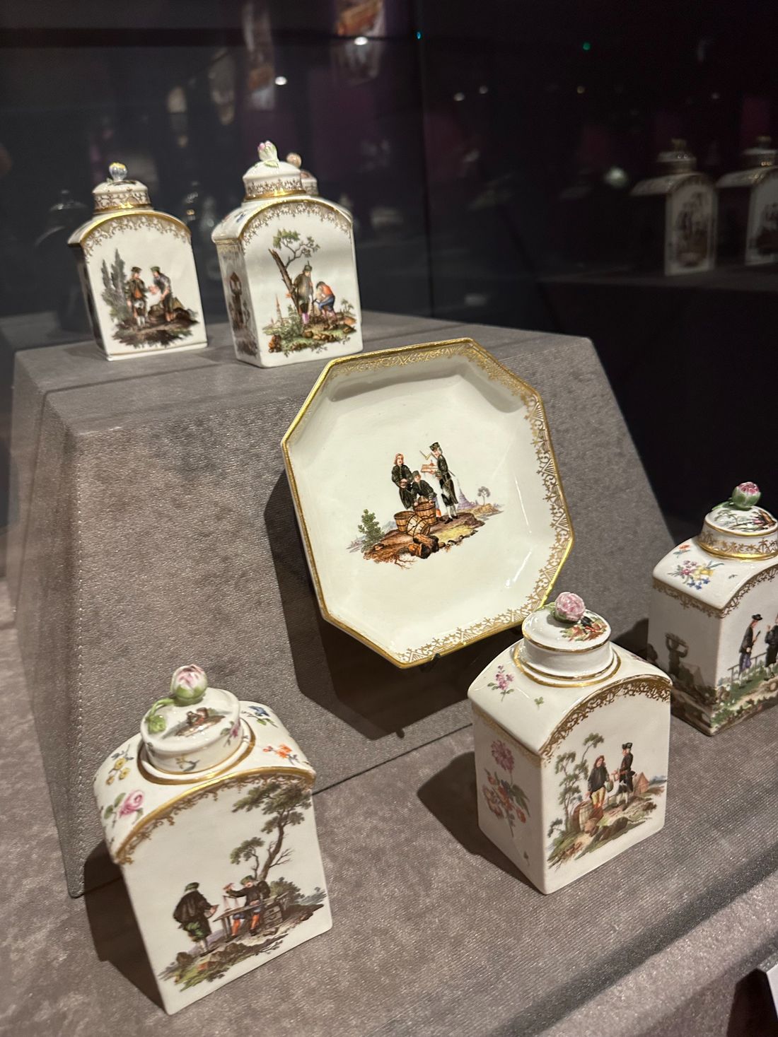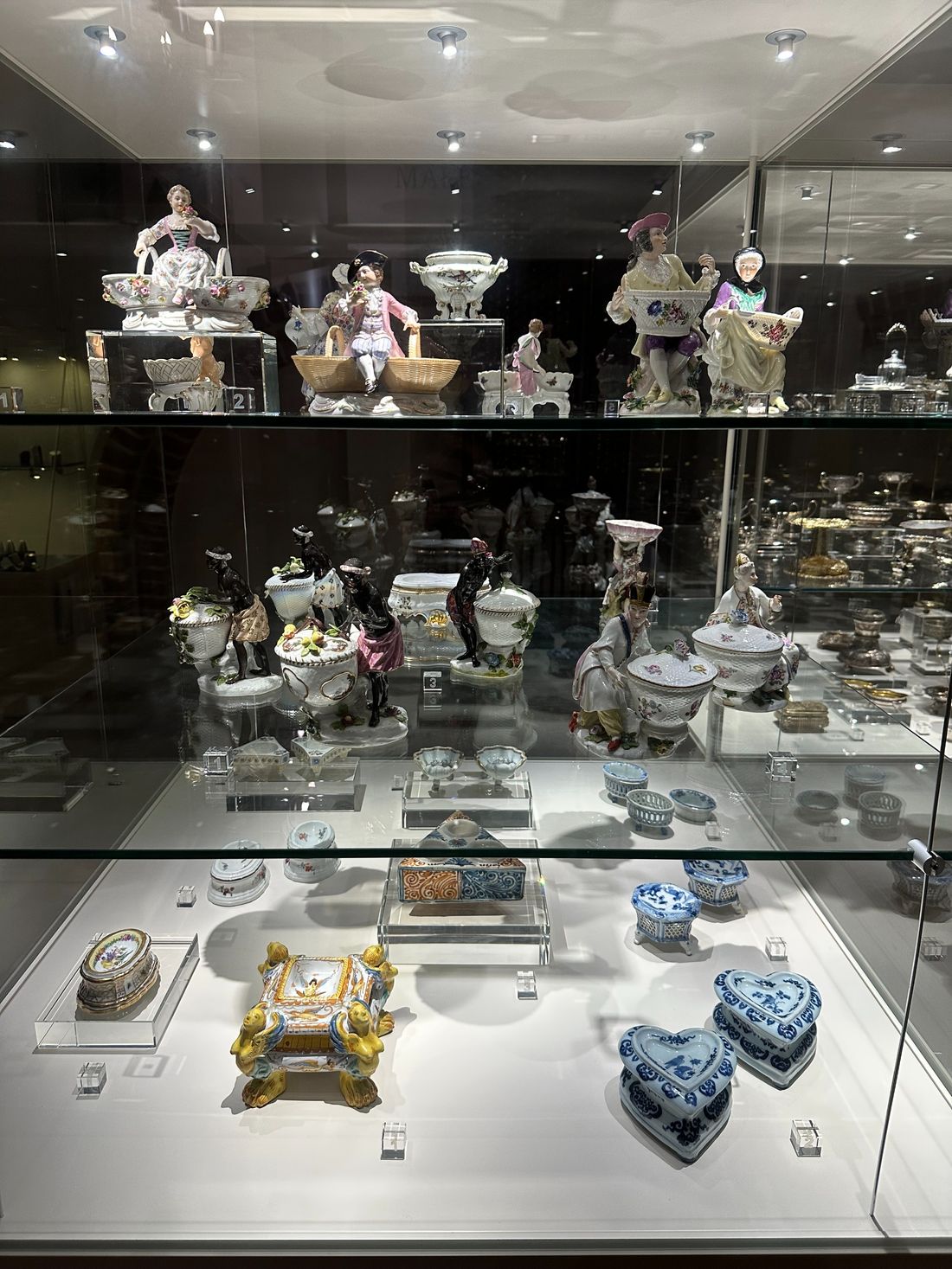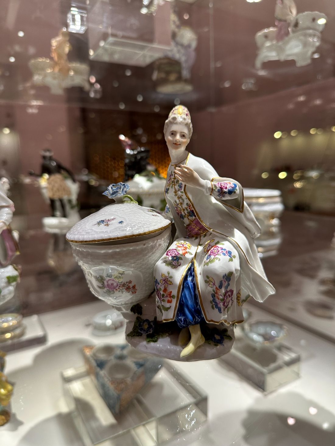 The exhibition featured porcelain sculptures, painted and gilded tableware, as well as jewelry boxes, snuff boxes, pill boxes, and needle cases. Some of these beautiful pieces date back to around 1700, the earliest development of porcelain in Europe. Everything was meticulously crafted. The exhibition featured many unique 18th-century pieces, known only in a single copy.