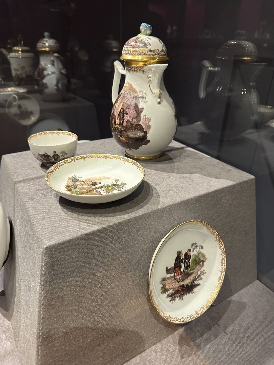 Na wystawie można było zobaczyć zarówno porcelanowe rzeźby, malowaną i złoconą zastawę stołową jak również opakowania na biżuterię, puzderka na tabakę, tabletki czy igły. Część z tych pięknych eksponatów jest datowana na lata ok 1700, są to najwcześniejsze początki rozwoju porcelany w Europie. Wszystko dopracowane w najmniejszych szczegółach. Wystawa prezentowała sporo unikatów z XVIII wieku, znanych tylko w jednym egzemplarzu.