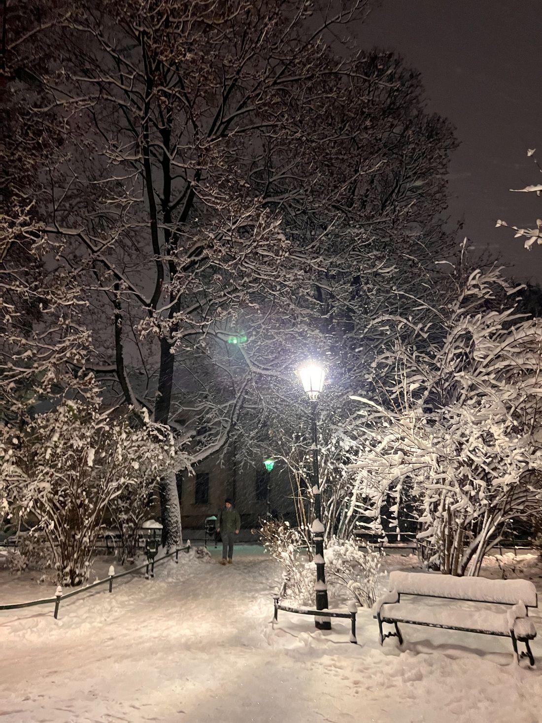 Oświetlone uliczki klimatycznymi latarniami, otulone białym puchem, wyglądały niczym z bajki. Trochę mi się to kojarzyło ze sceną z pierwszej części filmu "Opowieści z Narnii", kiedy Edmund wpadł do szafy po raz pierwszy. Zwłaszcza na tym ujęciu powyżej. Coraz bardziej zaczynał mi się podobać pomysł, wypadu na jarmark.