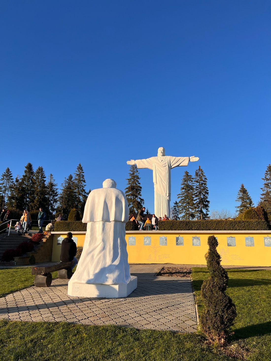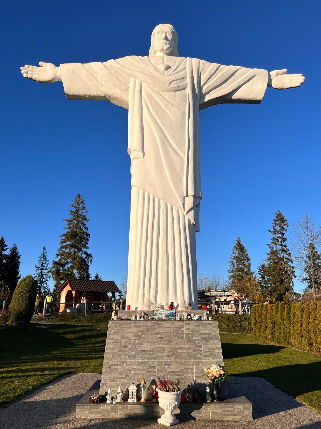 W czasie podróży, podczas sprawdzania informacji o miejscu docelowym dowiedzieliśmy się, że jest tam wzgórze Grapa na wysokości 797 metrów nad poziomem morza, a na nim znajduje się najwyższy posąg Jezusa Chrystusa na Słowacji.