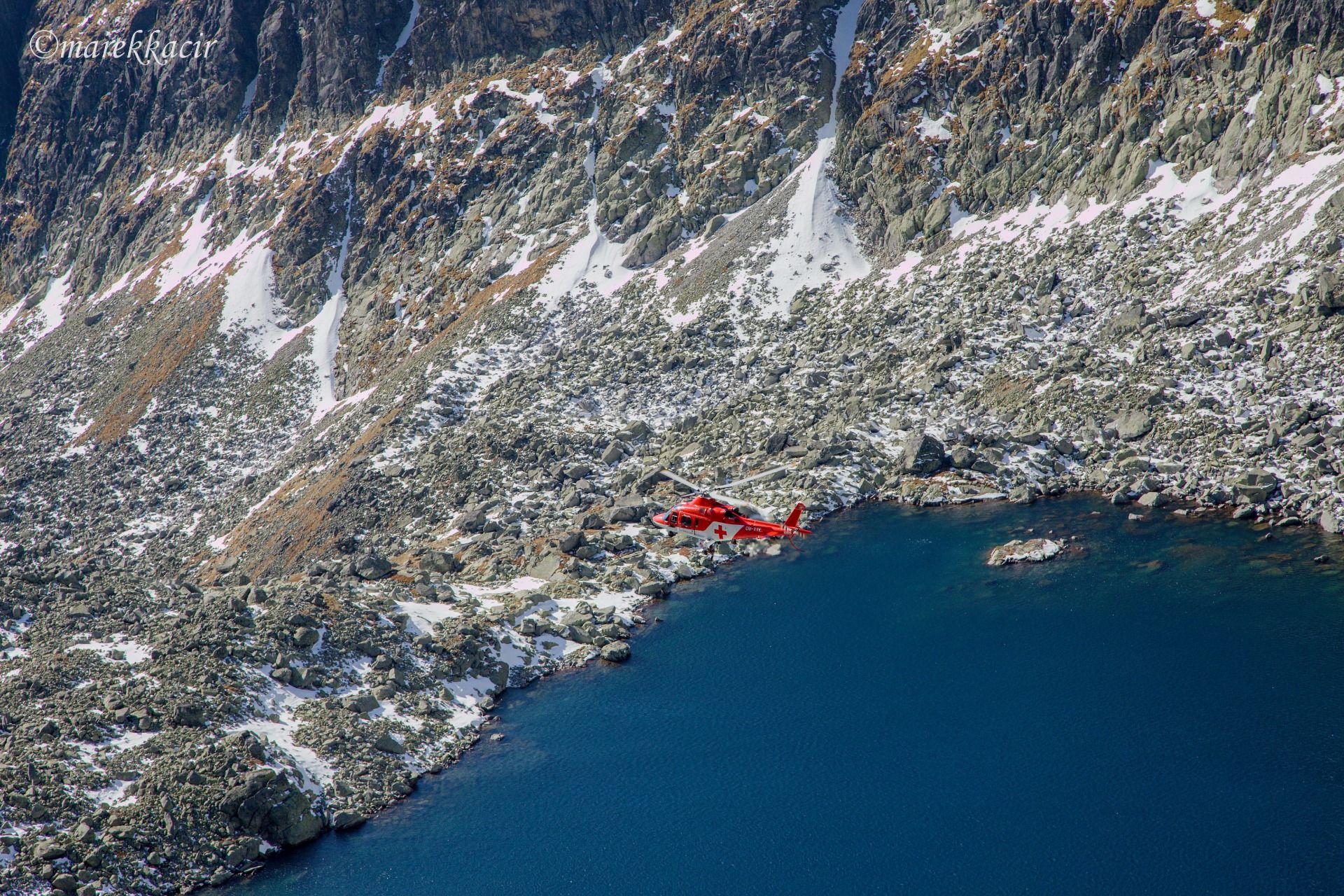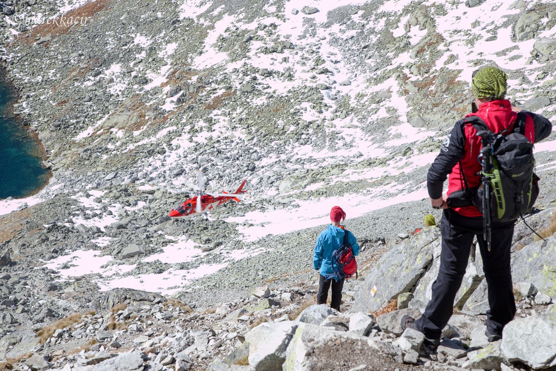 We hear a helicopter flying somewhere nearby. And indeed! On the other hand, a rescue operation is underway. The helicopter takes an injured tourist to the hospital, on which a loose rock has fallen.