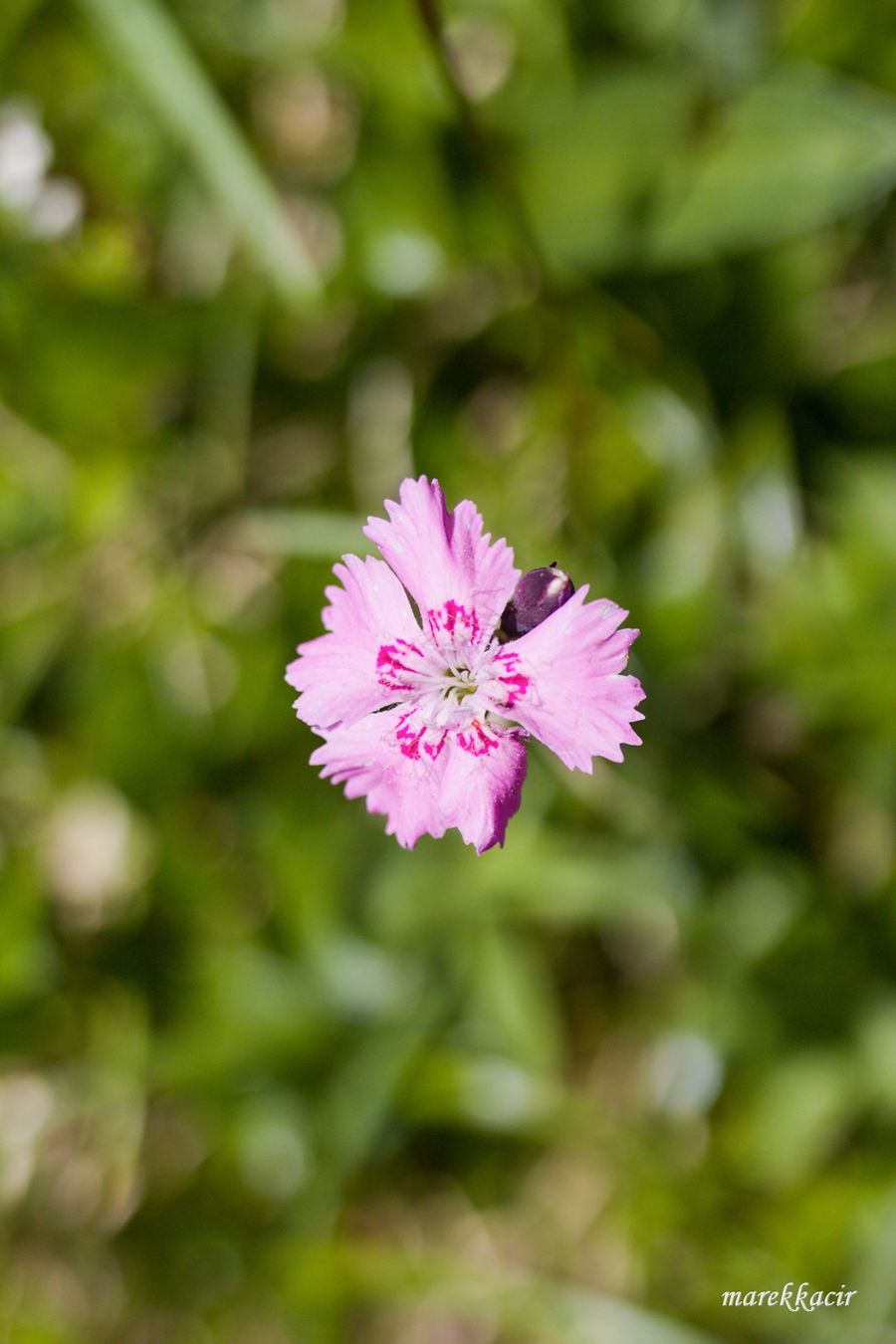 I slowly climb the asphalt road. I pass cottages of various types. It will probably be an interesting chat area. Soon I enter the forest and a steep climb comes. It's warm and the sun is rising in the sky just as I am climbing the hill. I am glad that I am walking through the forest, where the shadows of the trees protect me from the warm rays. My suspicion from the parking lot was confirmed. I do not meet a living soul in the forest. I enjoy the trip by taking pictures of everything I like. The meadow flowers are beautiful.