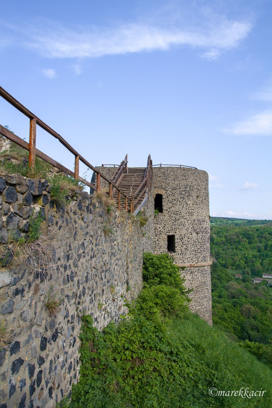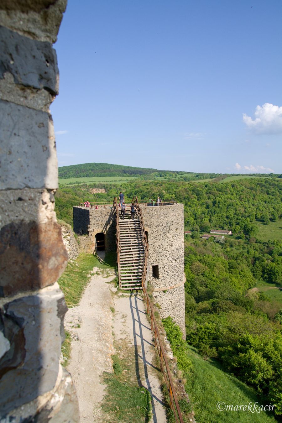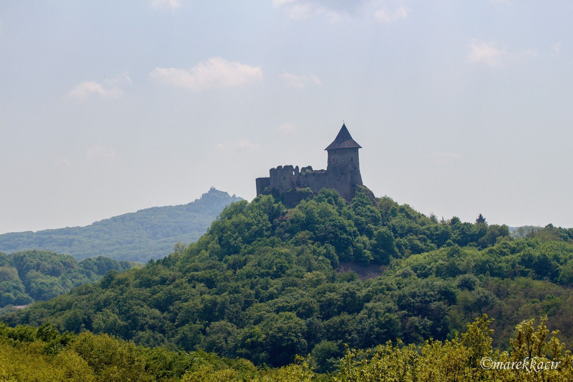 We come to the lookout tower from which we see the destination of our journey. The team is Šomoška Castle. In the background we see Salgó Castle.