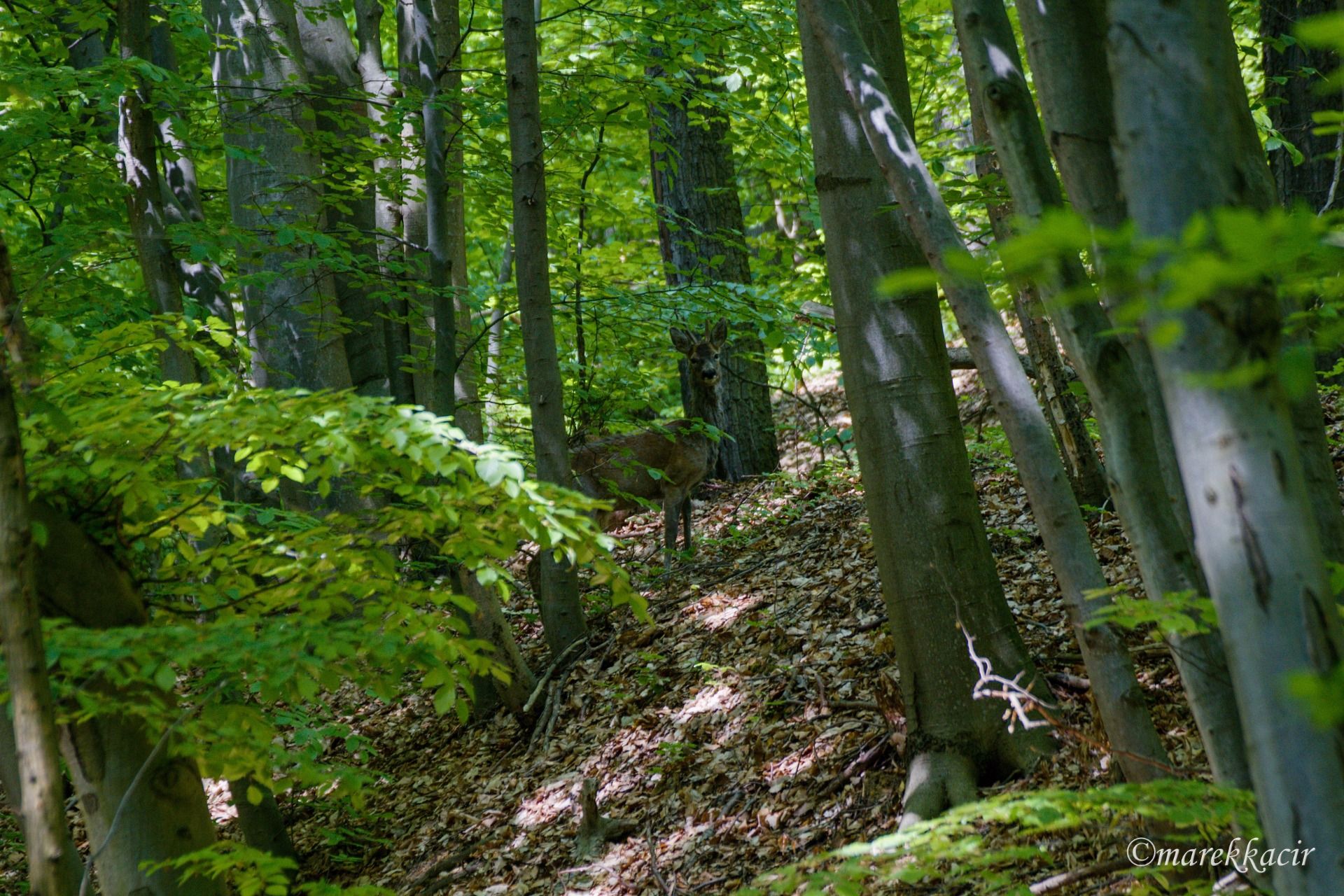 We cross meadows and enter the forest. As soon as we entered the bottom, I noticed a roe deer looking at us from behind a tree. He was probably wondering who wouldn't rest in that heat and disturbed him while relaxing.