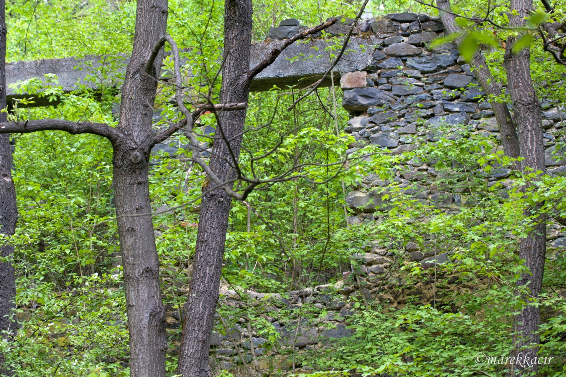 As we go, we find the ruins of houses in the middle of the forest. From the homes of the workers, who sometimes mined in the local mines, only stone walls overgrown with grass and trees remained.