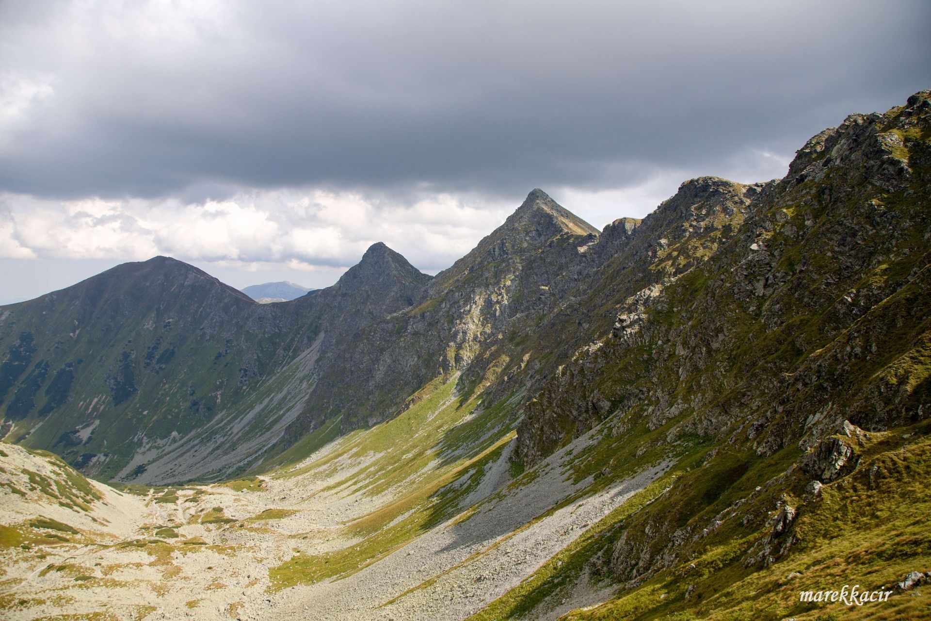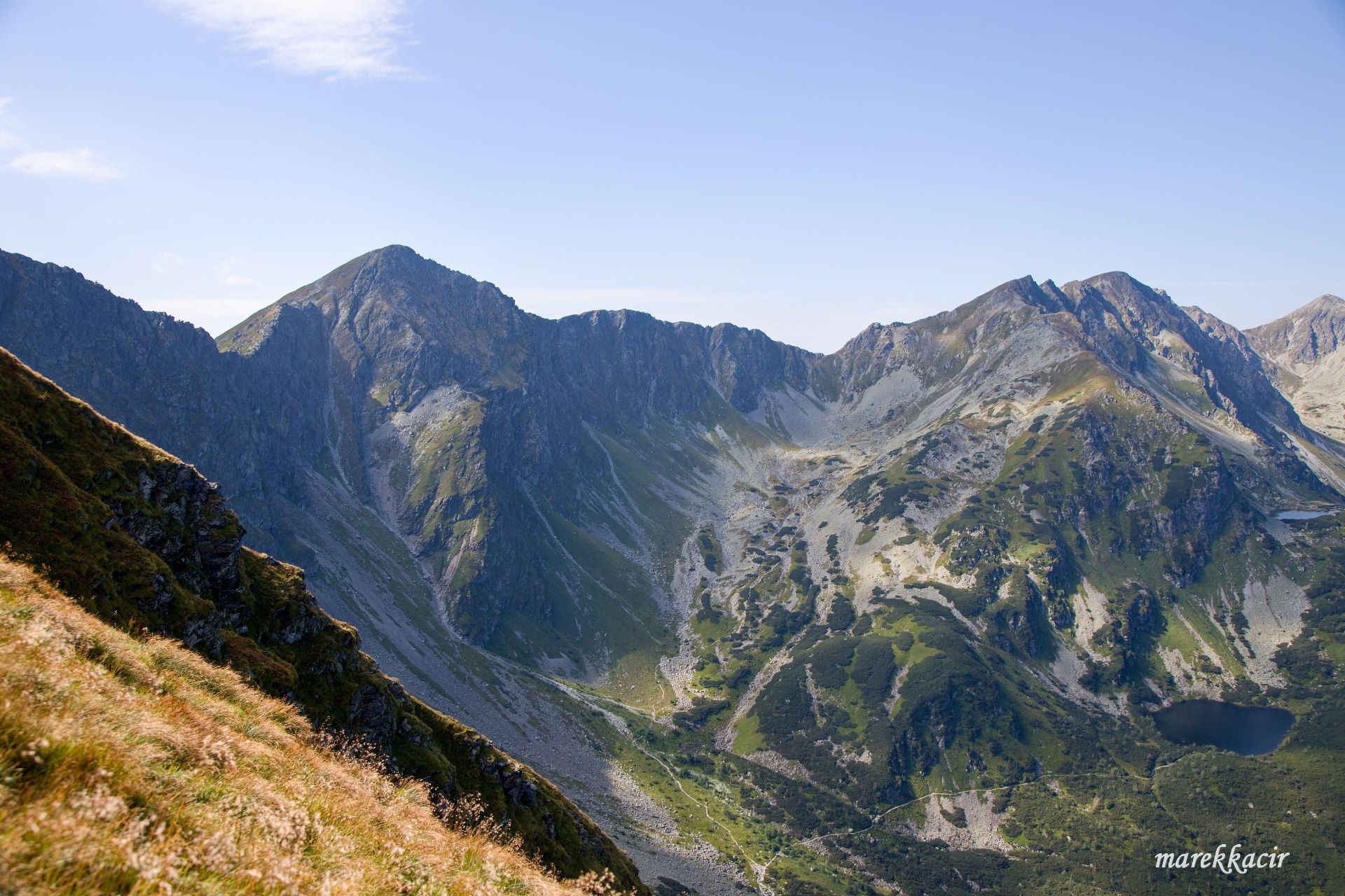 I made it! I am located on the hill Ostrý Roháč at an altitude of 2084 meters above sea level and this is a view of Spálená dolina.