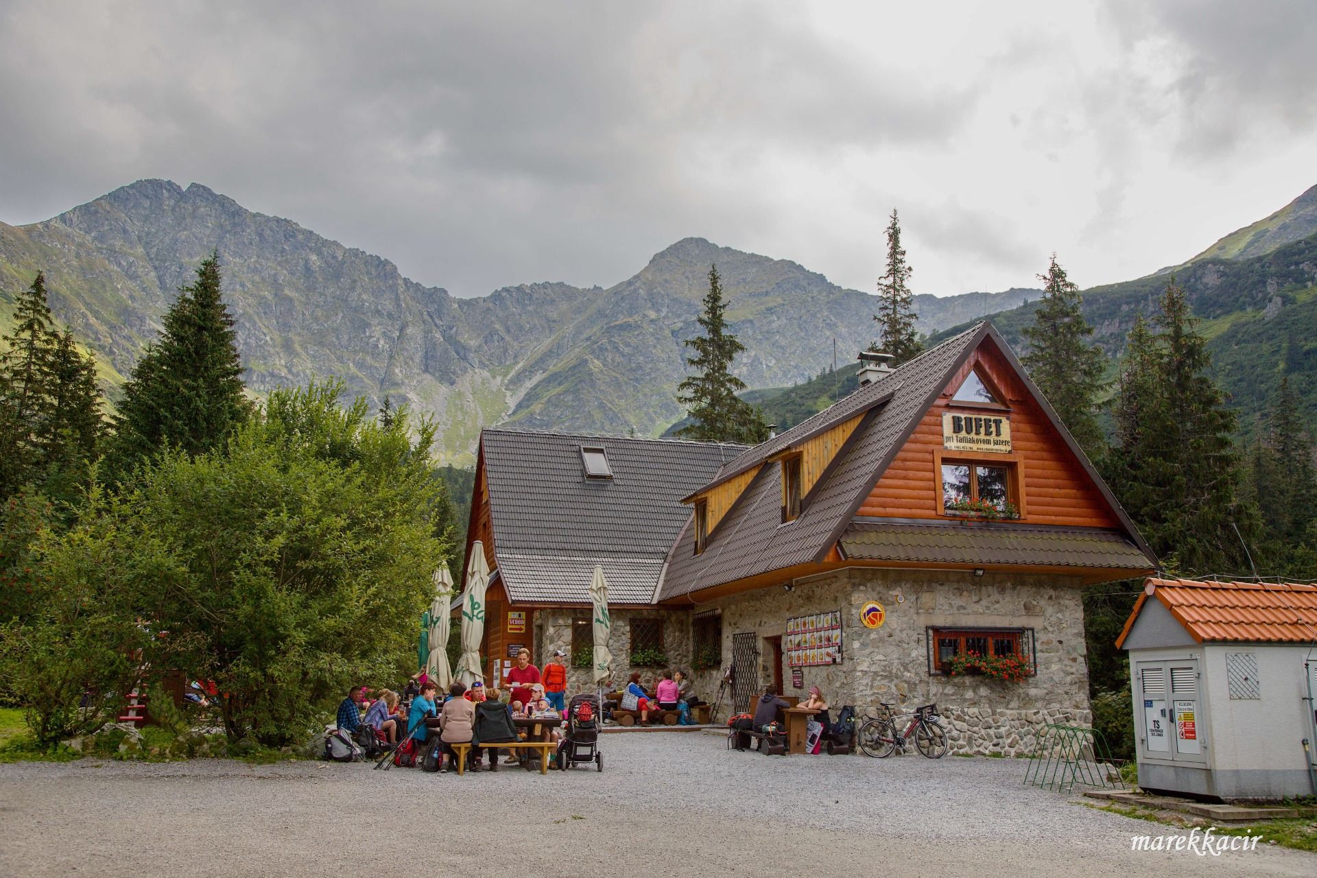 I come to Ťatliak's cottage, where a lot of people have refreshments.