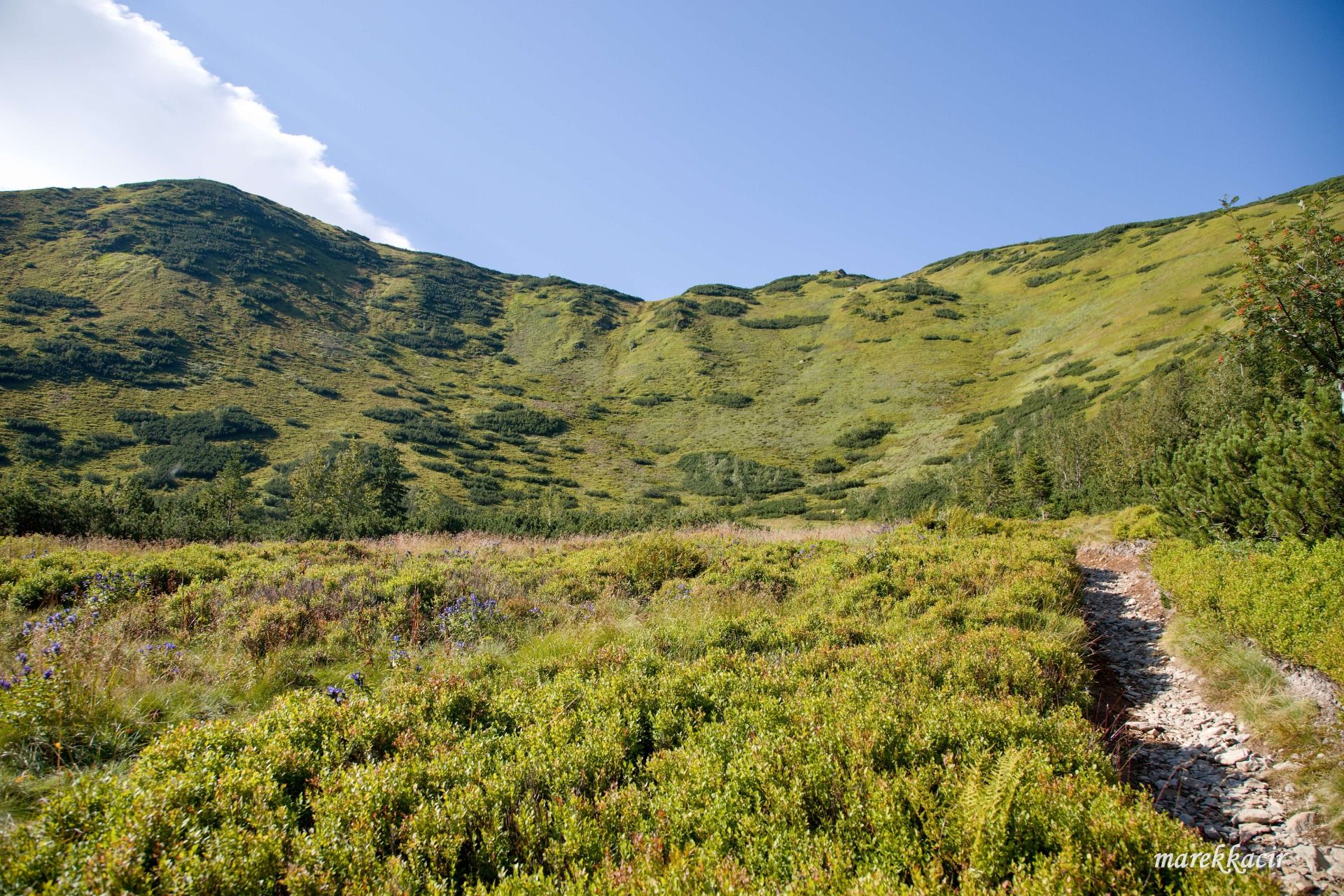 Along the narrow hiking trail, I slowly climb up and come to the Zábrať saddle at an altitude of 1655 meters above sea level. I found myself on a nice plain with an even more beautiful view of the surrounding area.