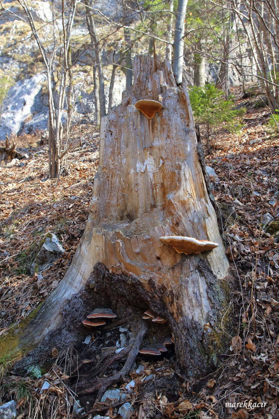 We climb slightly and from time to time we come across an interesting old tree overgrown with mushrooms.