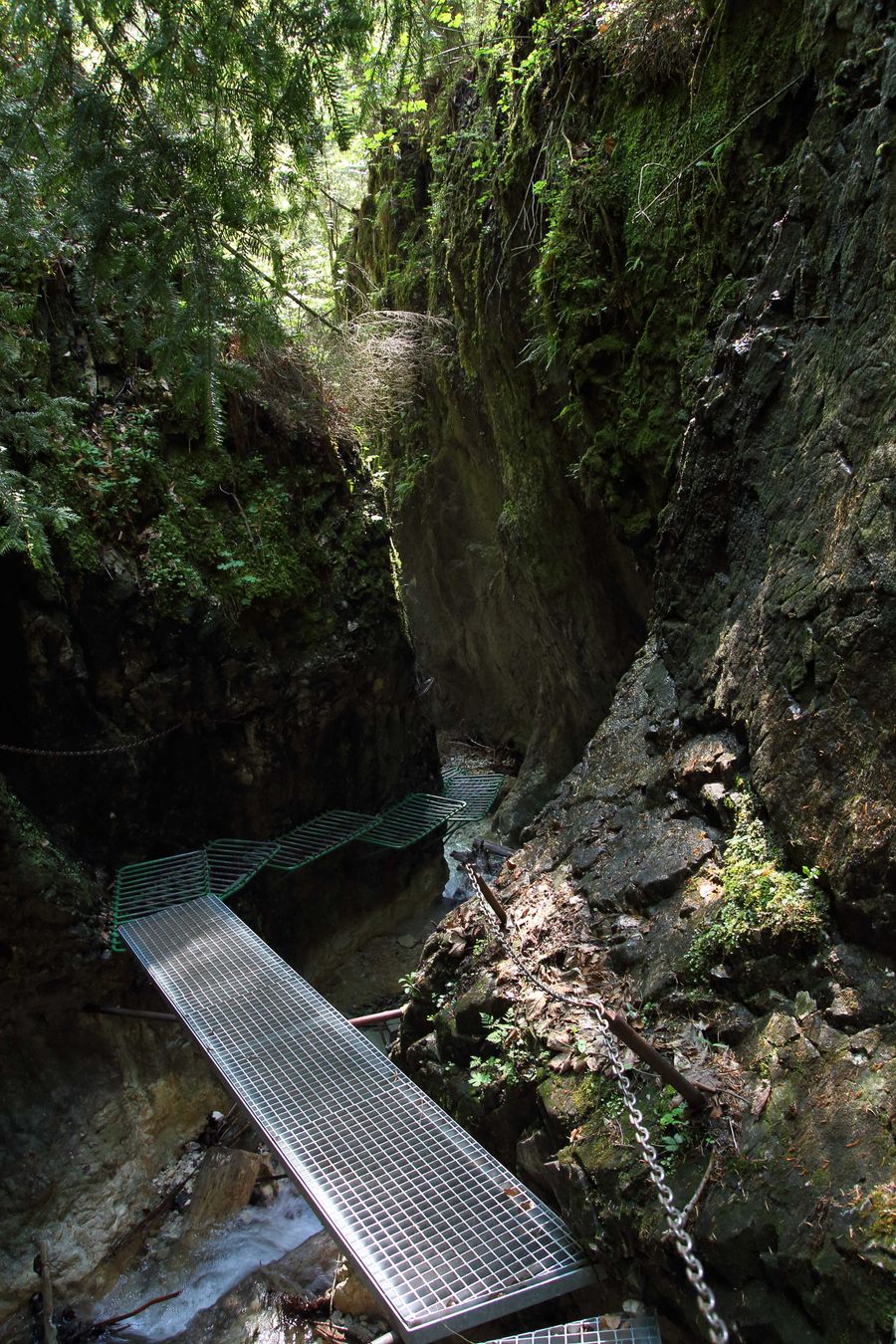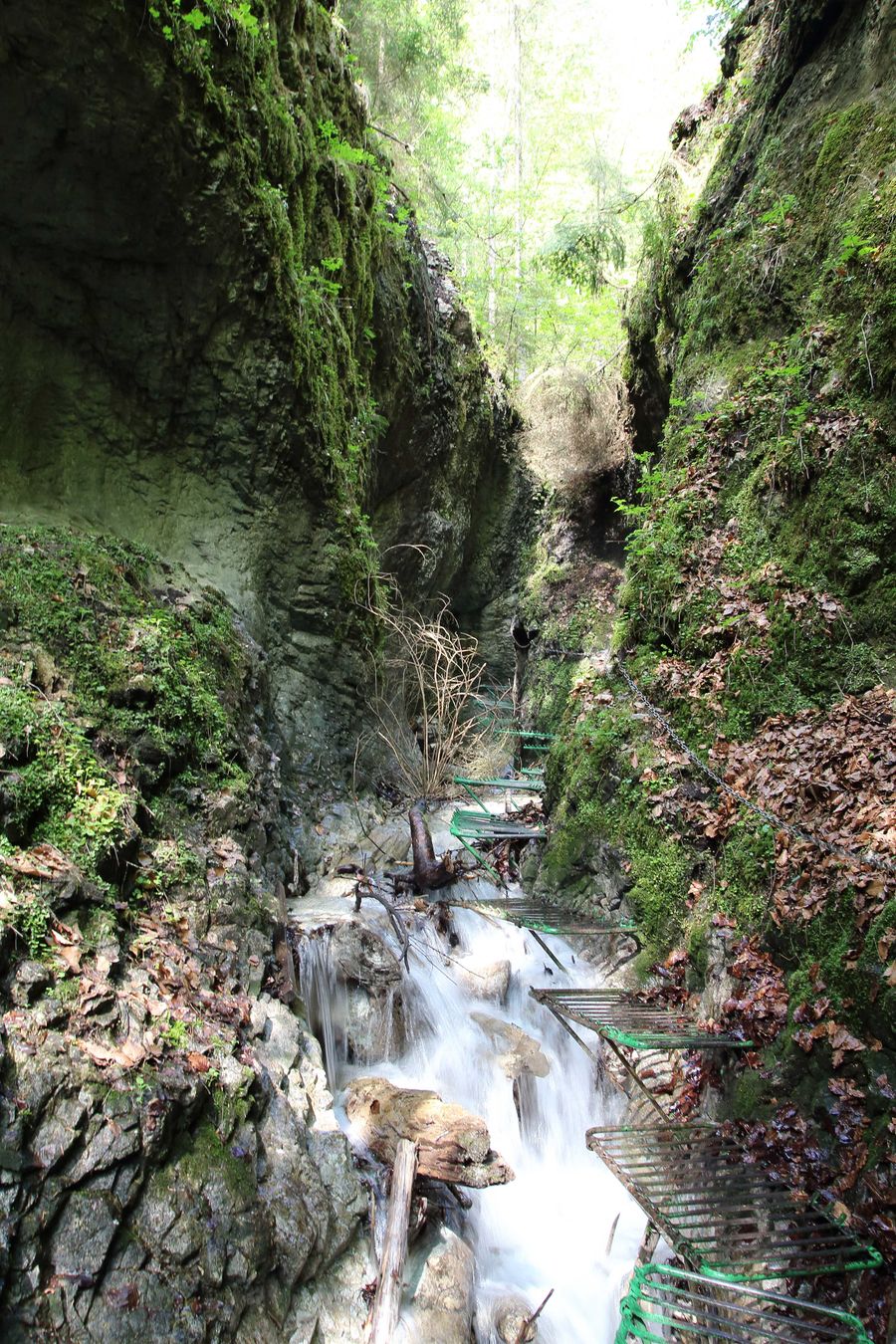 In some places the gorge is narrowing and we use wooden stairs to cross this place.