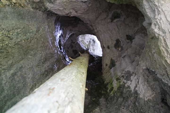 Along the way, we notice a tree that has fallen through a narrow hole in the rock. How he got there remains a mystery to me.