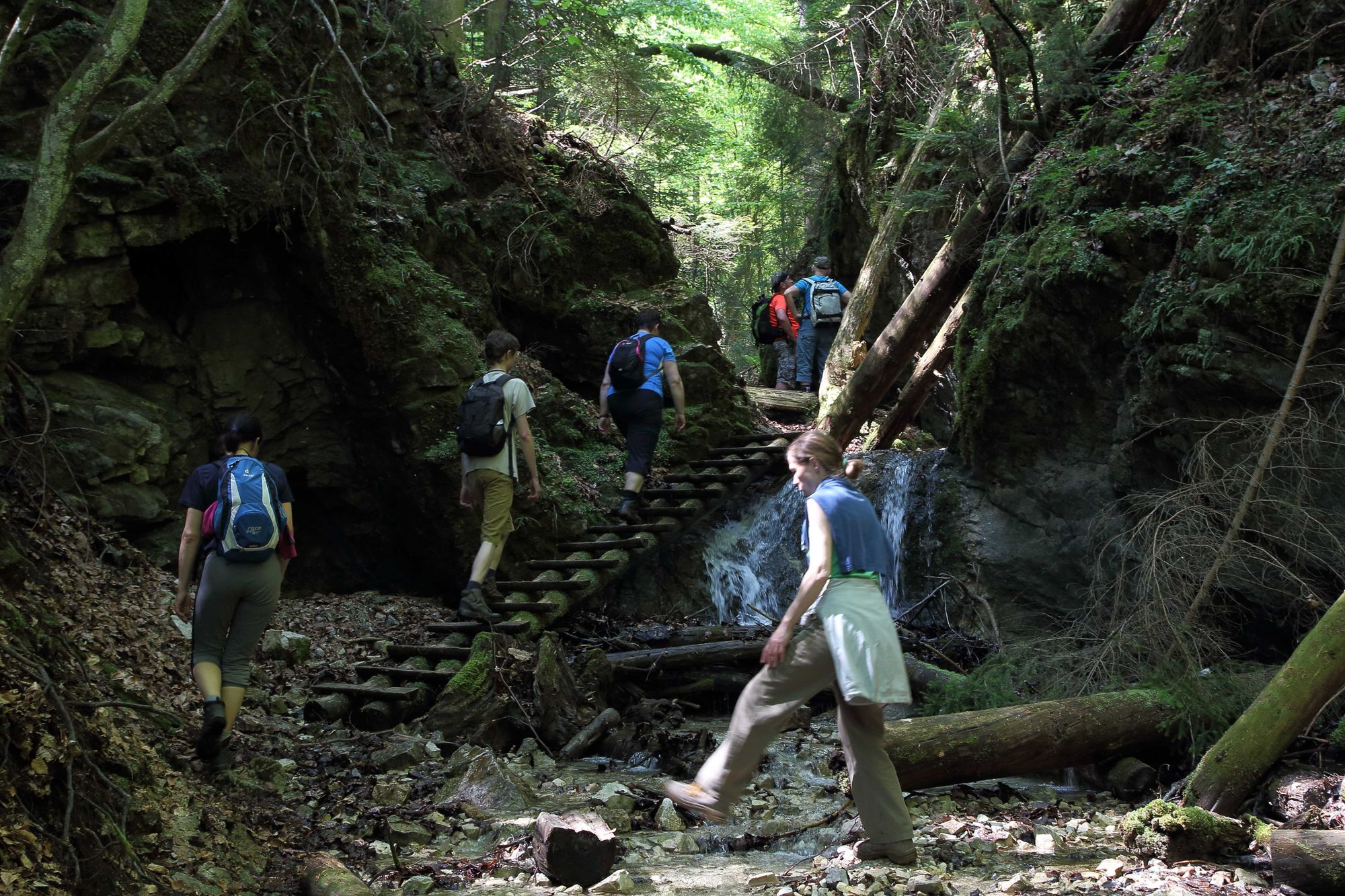 We walk upstream along the Hornád River. The biggest challenge of this tour awaits us at the mouth of the White Creek. It is here that the ascent to Kláštorisko begins via Čertova sihoť. A tourist trail leads through Čertova sihoť with a steep climb. Each of us has chosen a different strategy for going through this ascent. I try to climb at the same pace without a break. Some colleagues prefer to take breaks at regular intervals. Fortunately, no one gave up and we all went up this hill.