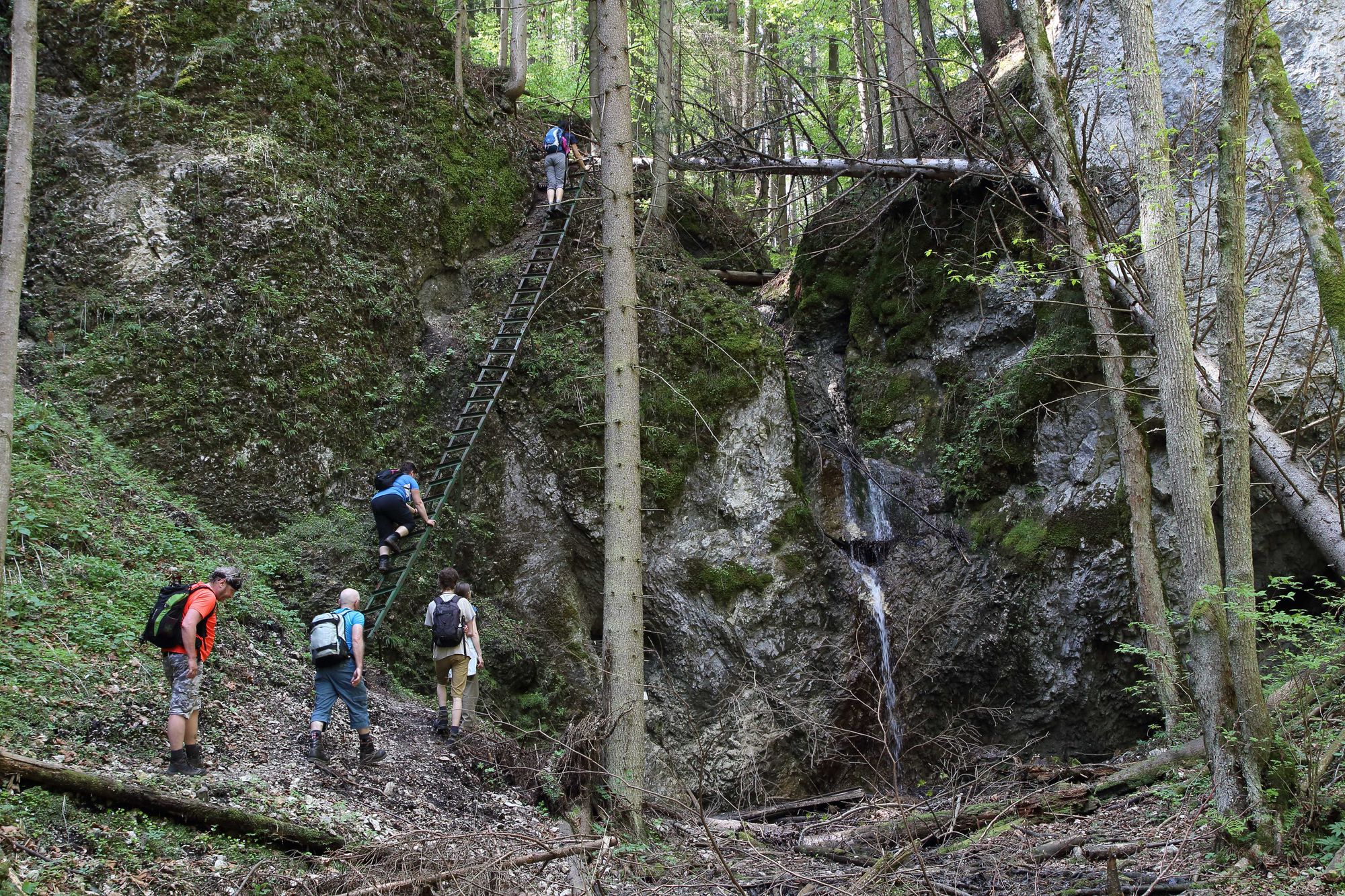 After a short rest and replenishment of fluids, we continue. We walk through the Monastery and go to see the huge waterfall from above. It is located at the end of the Kyseľ gorge, which is accessible only with a ferrate set.