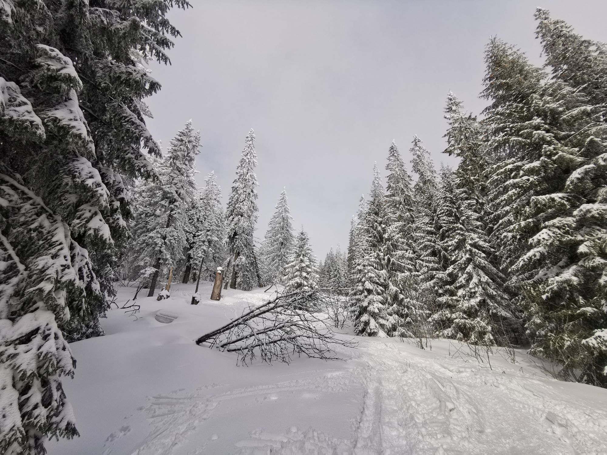 Temperatura plus 4 stopnie spowodowała totalne rozmoknięcie śniegu. Szlak był lekko przetarty przez skiturowców, ale nam (bez nart) nogi zapadały się często powyżej kostek za każdym krokiem.